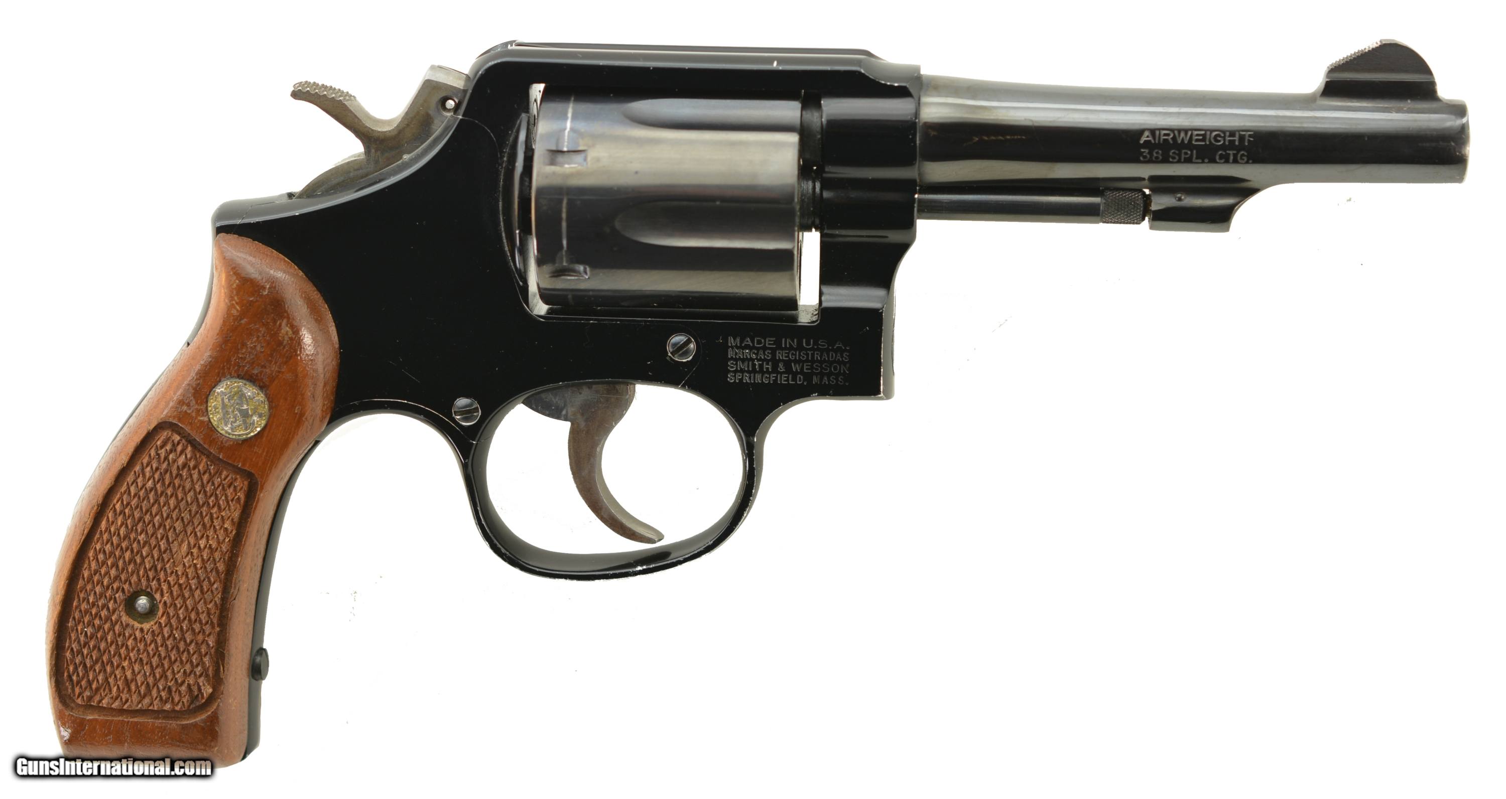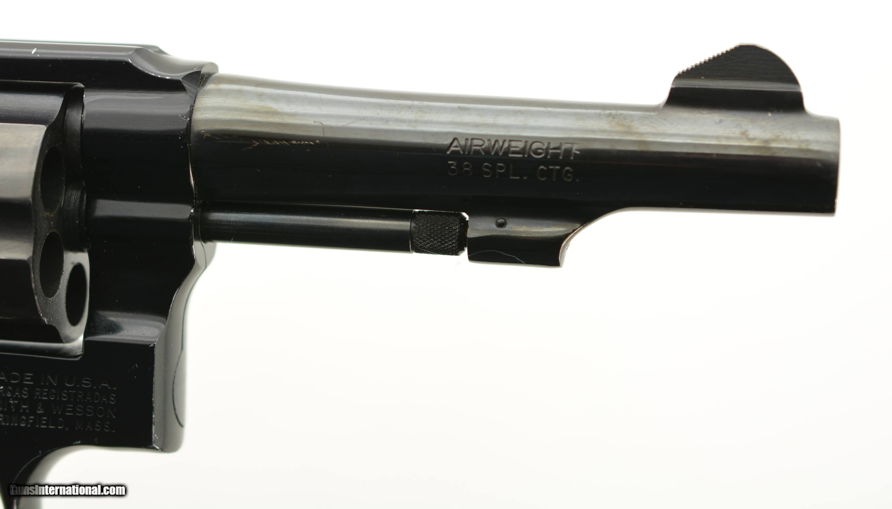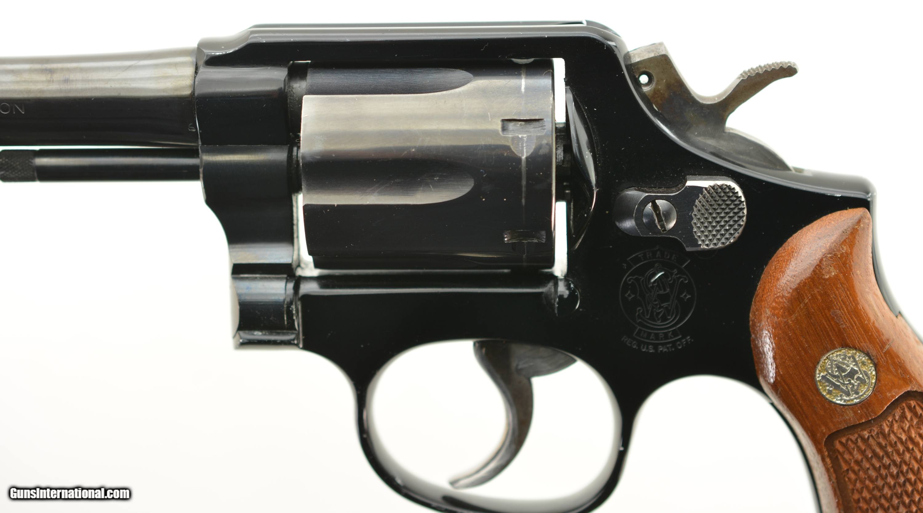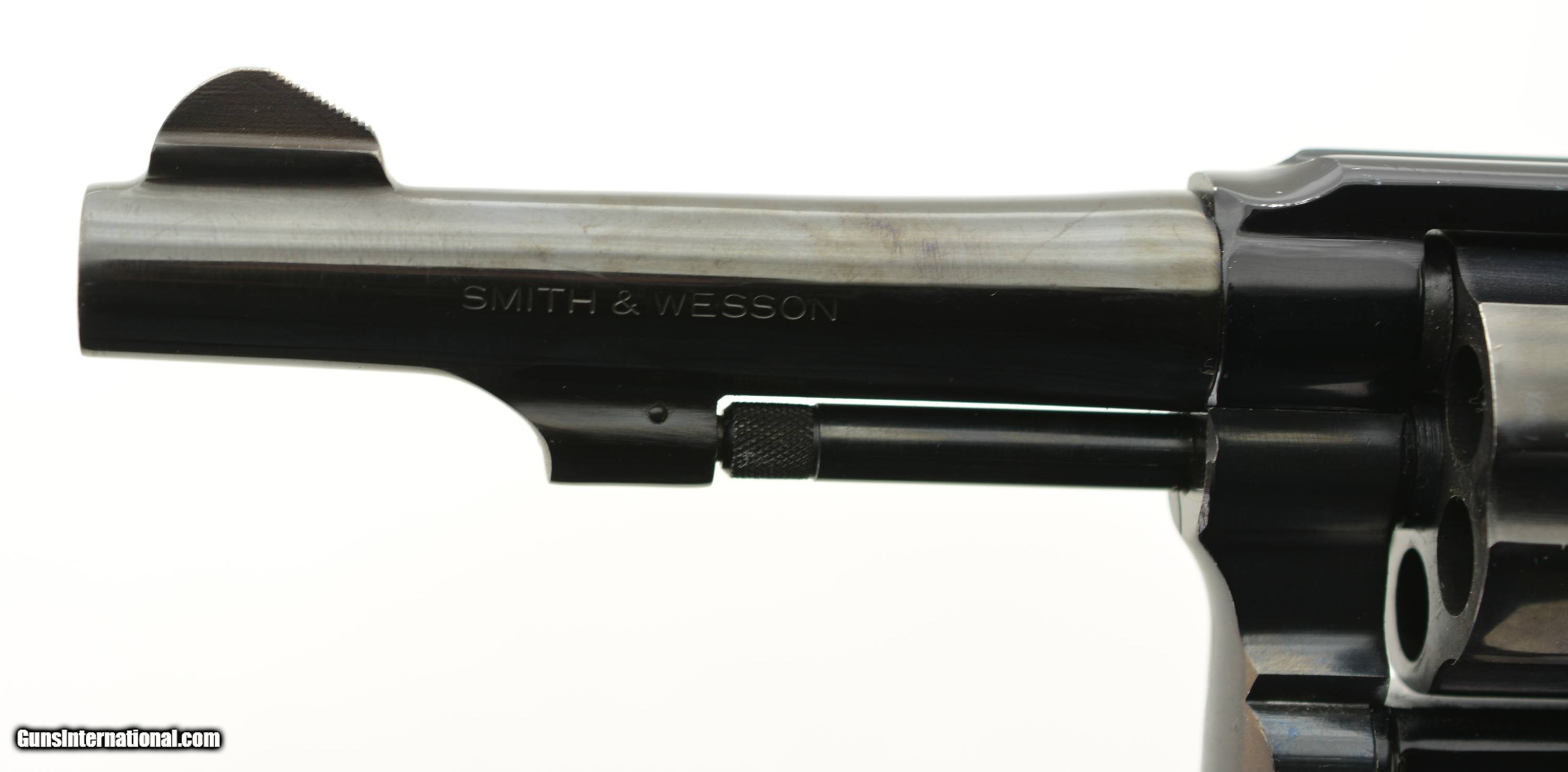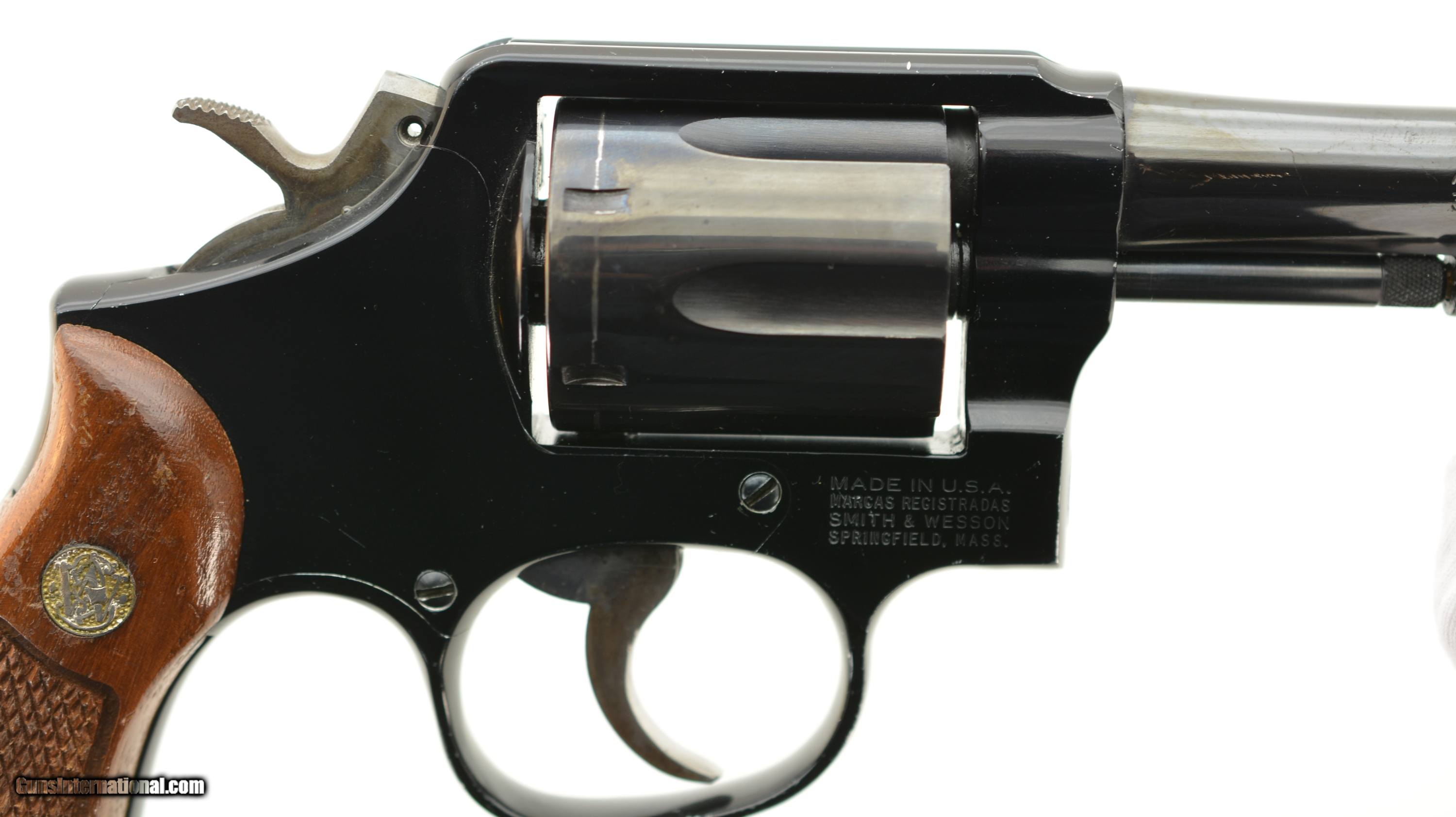 Description: Serial #ACZ0503, .38 Special, 4" barrel with an excellent, bright bore. This is revolver has 95-97% of the original blue remaining on the barrel and cylinder, while the lightweight alloy frame has a commensurate amount of the original black anodized finish remaining. The hammer and trigger have retained about 60-70% of the original color case-hardening, with the balance faded to bright gray. The checkered S&W grips have some minor wear and flattening of the points, as well as a small chip at the leading edge on the left panel. Some white paint has been added to the front and rear sights for greater visibility, and the action functions flawlessly. This is a fine example of a lightweight, service sized S&W revolver. FFL SOLD Manufacturer: S&W Model: 12 Serial Number: ACZ0503 Caliber Info: .38 SPL Gauge Info: .38 SPL |