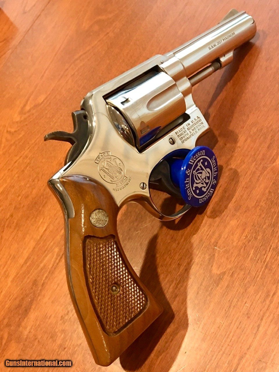 Description: This is a new in the box Nickel S&W model 13-1. It has a 4" barrel and the fixed sights. It has a Pinned barrel and the Recessed cylinder chambers. Case colored trigger and hammer. Hammer-mounted firing pin. Gun was purchased new from a hardware store that was going out of business - and it has been a safe queen for 40 years. Serial number dates this one to 1975-76. Nickel has no cracks, no yellowing, no flaking. See photos - mirror finish. Perfect. Original grips have no scuffs or handling marks of any kind. Unusual blonde color. I've seen this a few times and they were all 1970s-vintage firearms. Shiny medallions. No buggered up screws. Perfect. Collector quality firearm. **********Blue Star Hobbies is a group of friends in Central Illinois working together to ocassionally offer up items from our personal collections. From time to time we may list a rifle or shotgun but our focus is mostly S&W, Colt, & Ruger handguns built between 1946-1980. Our guns are better than our photography. We try to highlight flaws with red circles and everything else is usually glare or blanket fuzz. If you have a question about a photo please ask. We follow all Federal and State laws and GI policies. Please add $25 for standard shipping. Our FFL will ship to your FFL on Mondays, Tuesdays and Wednesdays to minimize in-transit risks. ********** SOLD Manufacturer: Smith and Wesson Model: 13-1 Serial Number: D795762 Bore: New Chambers: 6 Condition: New Metal Condition: Excellent Bore Condition: New Finish: Nickel Manufacture Date: 1975-1976 Extras: Orig box (exc cond), oil paper, paperwork, cleaning kit, screwdriver |