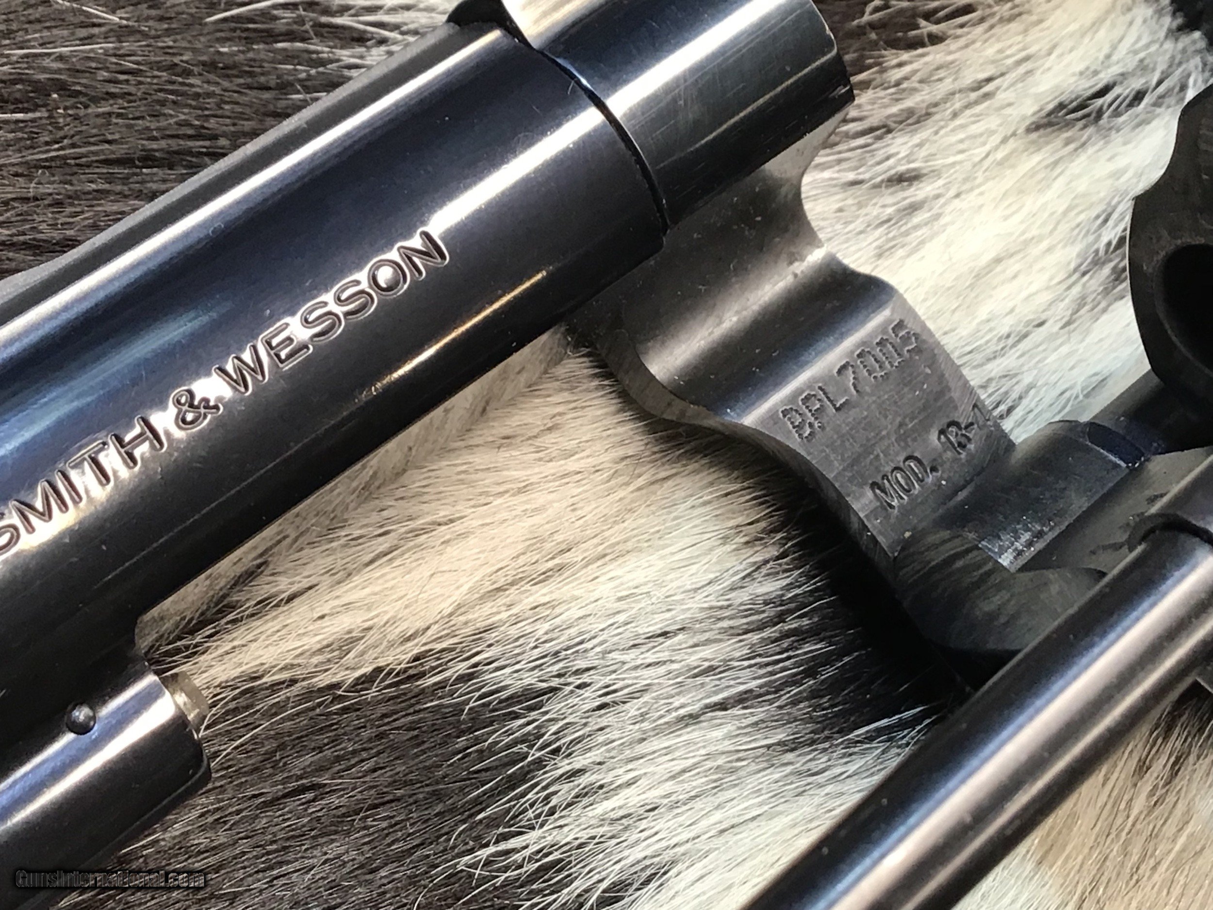 Description: Smith & Wesson model 13-4 .357 Combat Magnum wearing the desirable 3 inch barrel and Walnut checkered Magna round butt grips. Gorgeous original Blued finish with snag free fixed sights and heavy Bull barrel. Gun has been fired very little and shows no holster wear. Checkered round butt Magna grips with S&W medallions are in excellent condition. This three inch Blued Combat Magnum model has been long out of production and has gained a cult classic popularity among shooters and collectors. Gun comes in numbered to gun box with owners papers. One gorgeous and deadly carry gun. Add 3% if paying with credit card. Free shipping for all US Veterans. God Bless America from a proud American, and a Viet Nam Vet , thankful for our freedoms.. paid for by the Blood ,Sweat and Tears of our brave men and women in uniform. Ten Below Firearms is a Veteran owned and operated business. We specialize in out of production models of high quality firearms. We love to ship! We ship to all states where legal, just give us a call! Handguns normally ship for $35 and Long guns for $50 and up for extra length long guns. That's 2-3 day USPS Priority shipping, Delivery conformation and with tracking number. Optional Postal insurance is additional $1.75 per $100 and highly recommended. We are OPEN BY APPOINTMENT ONLY FOR IN PERSON VISITS, We trade, sometimes. All payments sent via mail must be received within five days of date of purchase or item will be relisted for sale. Layaway:If needed we offer a 60 day layaway program. Terms, 1/3 of purchase price down, 1/3 due in 30 days, and the final third to include card fees and shipping due at 60 days. Funds are non transferable and non refundable .Layaway is not available on negotiated prices. SOLD Handgun Caliber: .357 Magnum Manufacturer: Smith & Wesson Model: 13-4 Serial Number: BPL7005 Barrel Length: 3 inch Chambers: 6 Condition: Excellent Metal Condition: Excellent Wood Condition: Excellent Bore Condition: Excellent Barrel Type: Heavy Bull Action: DA/SA Triggers: DA Finish: Blued Sights: Fixed Manufacture Date: 1988-1993 Case: Box Item Location: Mn |