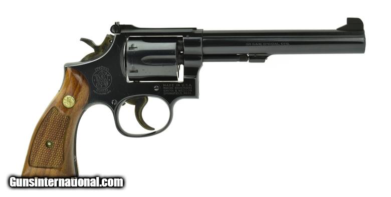 Description: " Smith & Wesson 14-4 .38 Special caliber revolver. 6” K-38 Target revolver. Has a small blemish on the cylinder, otherwise excellent condition with box.