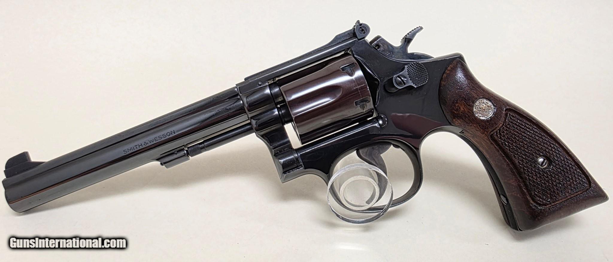 Description: Guns Listing ID: 601144 Very cool Smith & Wesson K38 14-2 Masterpiece. Gun is in nice condition with few signs of wear and use aside from grips. Cylinder also appears to be reblued but markings on the rest of the gun are crisp suggesting original bluing so marked down to fair from what would otherwise be very good. Clean bore and good action. Manufacturer: SMITH & WESSON Model: 14-2 Caliber Info: .38 SPL Condition: Used - Non-Certified Barrels: 6" BARREL Action: REVOLVER Finish: blued Price: $679.99 Contact Seller |