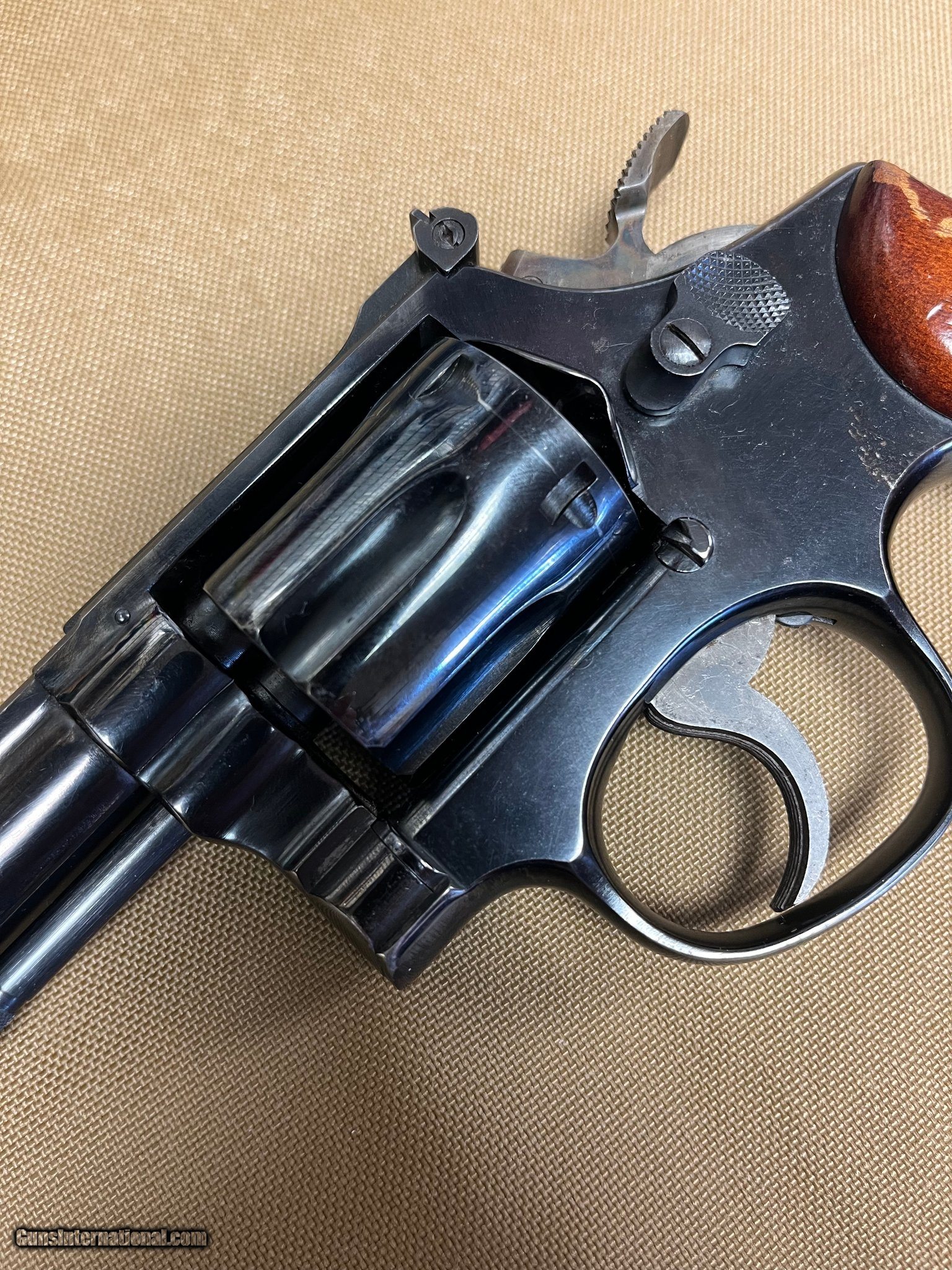 Description: Guns Listing ID: 1308598 Smith & Wesson model 14-3 38 spl revolver. 6 shot and 6” barrel. Adj sights. Pinned barrel. Has some wear at muzzle and normal handling wear but a pretty nice example. SOLD Manufacturer: SMITH & WESSON Model: 14-3 Caliber Info: .38 SPL Condition: Used - Non-Certified Barrels: 6 BARREL Finish: BLUED |