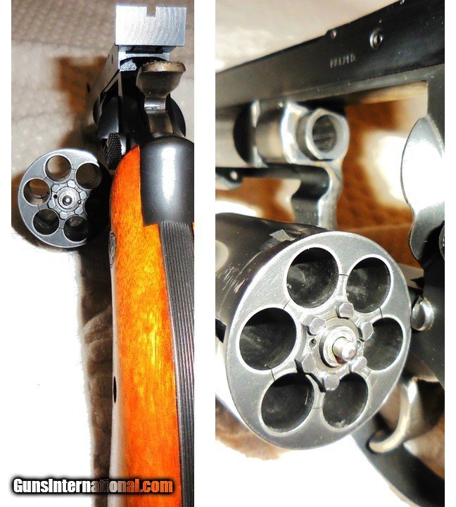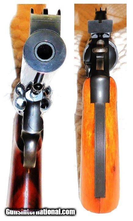 Description: Another PPC Competition-Ready; Used Circa 1965; Serial # K6498xx Smith & Wesson .38 Special; Model 14-2; Double- and Single Action; Three-Screw Sideplate Revolver Custom Tuned and set up for PPC/Race Gun competition by Highly Regarded SoCal Gunsmithing Firm of Cheshire & Perez: 6-Inch Pinned Heavy Barrel with Recessed Crown; Aristocrat Wide, Full-Length, Scalloped Non-Reflective Rib with Integral Sights that have Adjustable & Individually-Settable Three-Position Elevation Stops; Polished Wide, Smooth Trigger & Polished Hammer; Professional DA/SA Action Job. High Grade Smooth Oversize S&W Matching-Grain Grips have a Speed-Loader Cut-Out on the Left Side. Sight Radius is just under 8-Inches. Rifling is sharp & bright (despite a few powder flakes that sneaked in to the photo). Not being dealers or experts, and because this revolver is customized, polished, refinished and modified for competition, condition is best judged from the photos. Please ask any questions or request additional information before purchase as this item will be troublesome and costly to return owing to CA re-registration and other regulations. Any refunds will be minus our actual shipping cost and FFL fees (greater than $150) after buyer pays return shipping. The listed price Includes Insured Air Shipping from a CA FFL Dealer to yours. Payment is by Money Order, Bank (Certified) Check or Personal Check (held 2-3 days). We are the Estate Executor and Trustee, not a dealer, and cannot handle credit card or electronic payments. This item is subject to prior sale. SOLD Handgun Caliber: .38 Special Manufacturer: S&W Cheshire Perez Model: Model 14-2 Serial Number: K6498xx Barrel Length: 6 Inches |