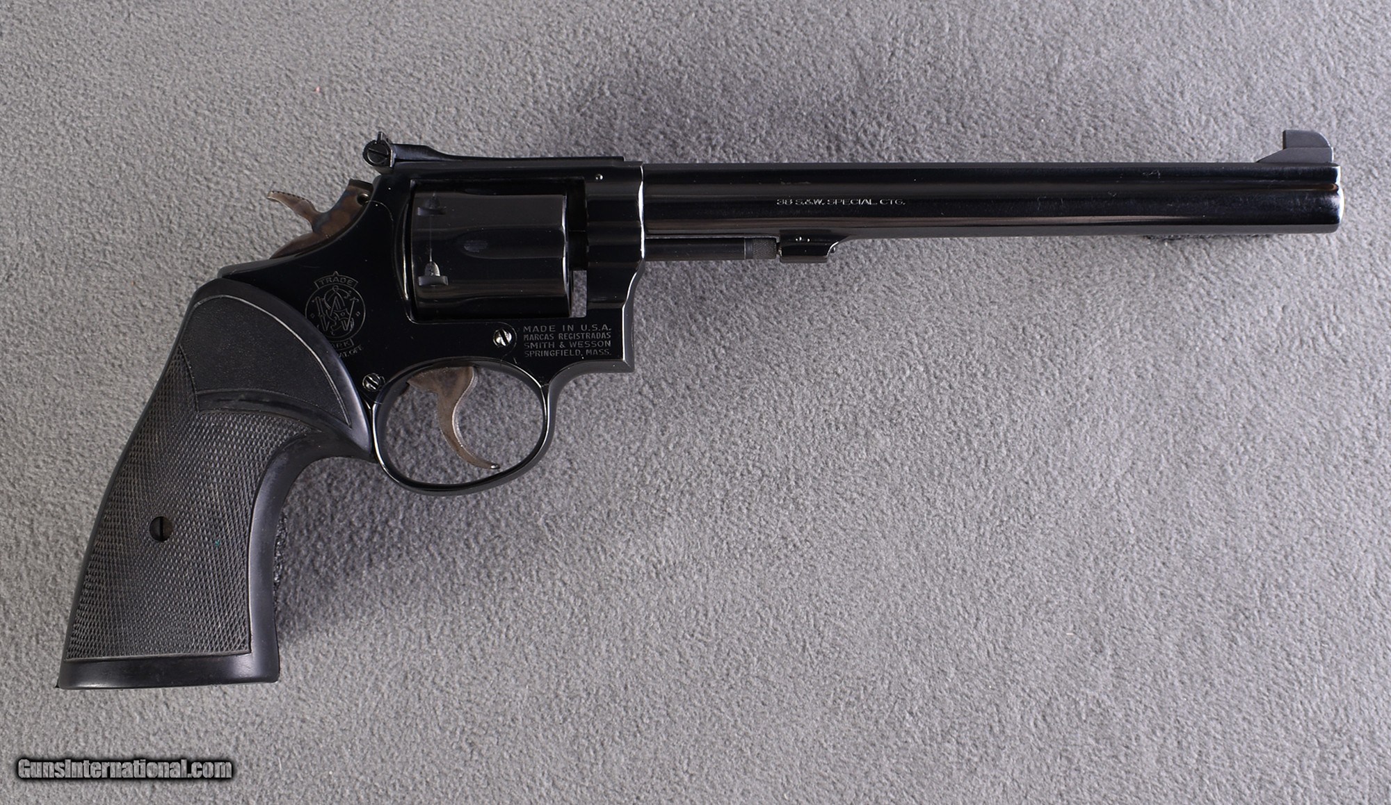 Description: The Smith & Wesson Model 14-3 in .38 Smith & Wesson Special is a refined target-oriented revolver with an adjustable rear sight and comes with a soft leather case, in great condition with only slight wear to the bluing at the muzzle. Tailored to the precision or range shooter who values classic S&W handling and crisp sights, this Model 14-3 offers accuracy and a tidy finish that's ready for matches or careful collection; please be sure to carefully review all photos provided to fully understand the condition of this firearm before purchasing. This firearm is being offered by the Boise Cabela's Gun Library. We will ship for free to your local Cabela's or Bass Pro Shops for transfer to you. If you are interested in purchasing or have any questions, please call the Boise Cabela's Gun Library directly at (208)-672-7922. Payment by credit card or Cabela's/Bass Pro Shops gift cards is required at the time of purchase. We cannot accept debit cards over the phone, so if you are ready to purchase, please have payment information available. Before calling, please also have the make, model, price, and Cabela's/ Bass Pro SKU or seller's inventory number from Guns International on hand. If you reach our voicemail, please leave a message with this information, and we will return your call as soon as possible. Thank you for your interest. .38 S&W Special Barrels: 8 1/4 Weight: 2.75 lbs Sights: Adjustable Black Rear - Fixed black front Item Location: Boise, ID Price: $699.99 Contact Seller |
