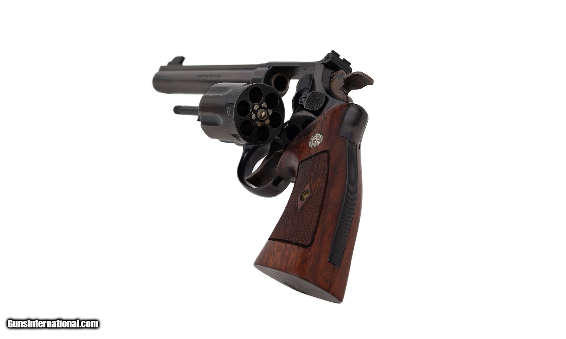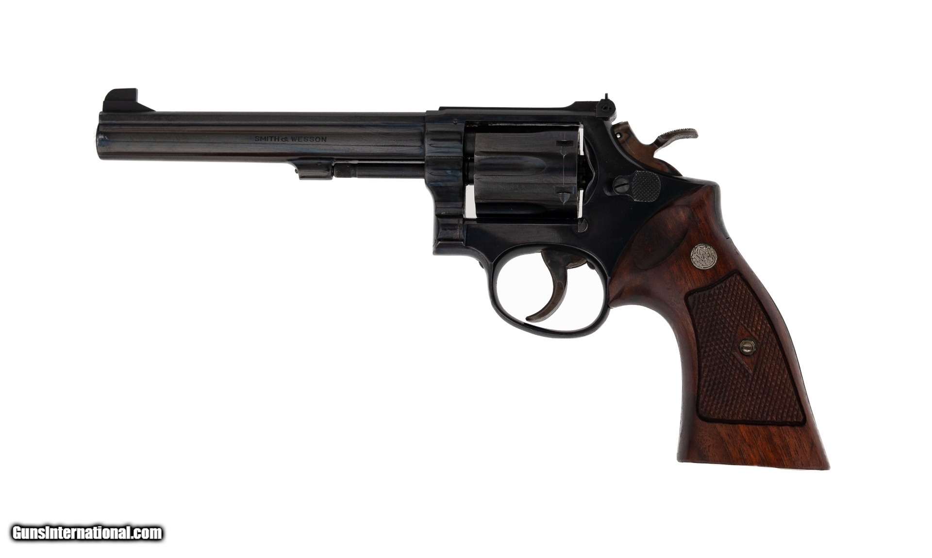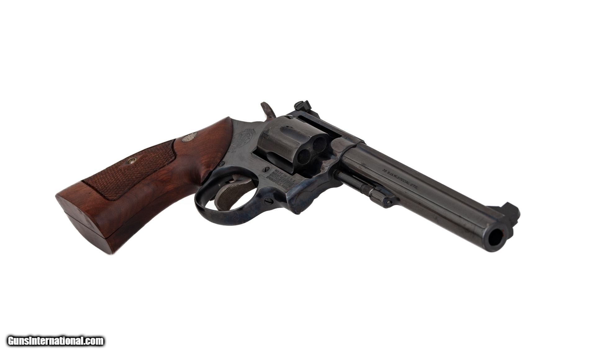 Description: The Smith & Wesson Model 14 is a six-shot double-action revolver with adjustable open sights built on the medium-size "K" frame. It is chambered for in .38 Special. This one is fitted with a 6" barrel in very good condition target hammer and trigger very light loss of blue at the muzzle with the factory box. SOLD Manufacturer: Smith & Wesson Model: 14 Caliber Info: .38 Special Condition: Preowned Metal Condition: Very Good Barrels: 6 Action: Revolver Gauge Info: .38 Special Weight: 2.250000 Case: Factory Box |