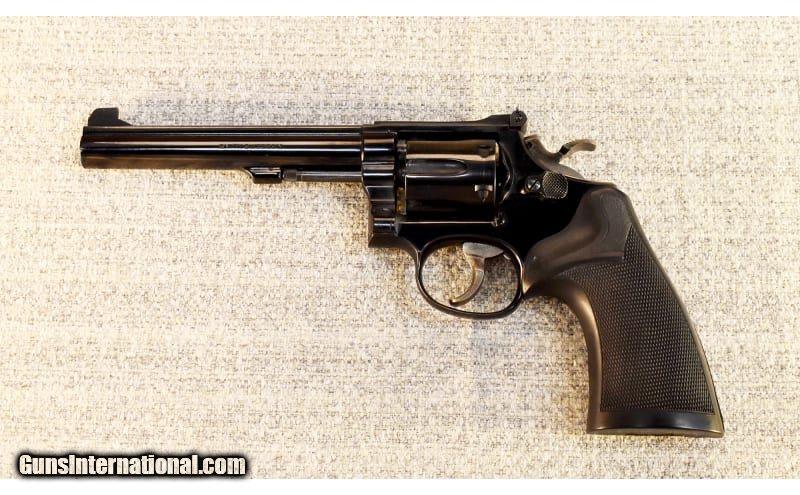 Description: This is a pre-owned Smith & Wesson model 14-4 in .38 Special with a six-inch barrel, target trigger and target hammer .38 S&W Special SOLD Metal Condition: Very good overall with some cylinder drag marks and clusters of small scratches on the right side of the barrel and the underside of the frame by the trigger guard Wood Condition: Very good with light handling marks Bore Condition: Clean with bright lands Barrels: 6 Triggers: "DA/SA, target trigger and target hammer Butt Pad: Pachmayr Presentation grips Weight: 2 Lbs. 8 Oz. Sights: "Patridge front, adjustable rear Item Location: Glendale, AZ |