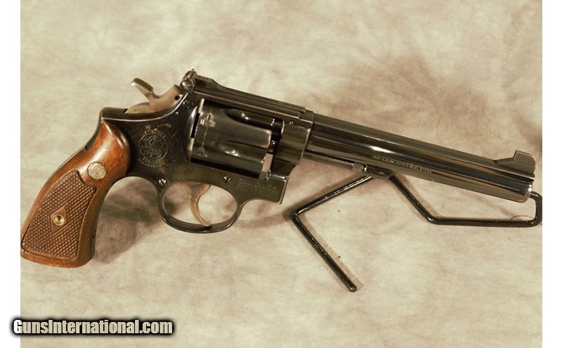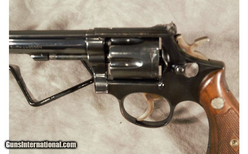 Description: This Smith & Wesson pre model 14 in a K frame has a 6" barrel with a micro adjustment rear sight and is highly sought after by competition shooter for is legendary accuracy .38 Special SOLD Chambers: 38 spl Metal Condition: Good Some wire brush damage on frame Wood Condition: Very good some handling wear Bore Condition: Very good Barrels: 6 Sights: Micro adjustment iron sights Item Location: Chesterfield, MI |