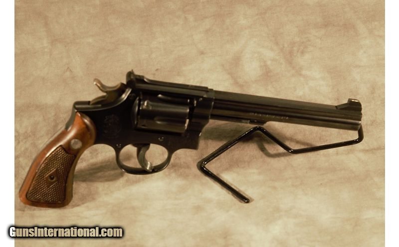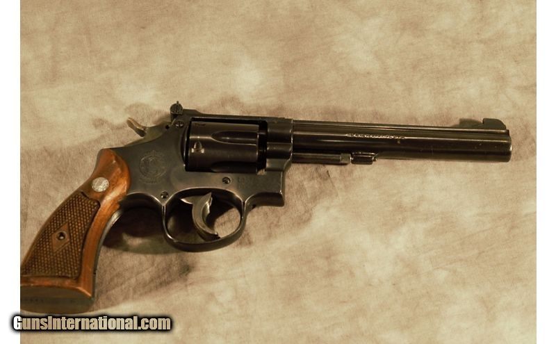 Description: This Smith & Wesson pre model 14 in a K frame has a 5" barrel with an micro adjustment rear sight and is highly sought after by competition shooter for is legendary accuracy .38 Special SOLD Chambers: 38 spl Metal Condition: Very Good some handling wear Wood Condition: Very Good minor ding and finish wear Bore Condition: Very Good no rust Barrels: 5 Sights: Iron sights Item Location: Chesterfield, MI |