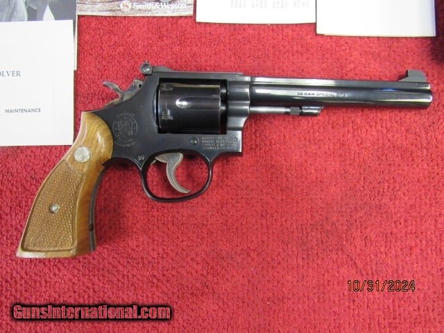 Description: Guns Listing ID: 463715 PRE OWNED VERY GOOD+ CONDITION ONCE FIRED- LIGHT TURN LINES ON CYLINDER- INCLUDES BOX/ MANUAL LATE 70‚‚S PRODUCTION SMITH AND WESSON MODEL 14-4 K38 MASTERPIECE 93K SERIAL NUMBER 1978 PRODUCTION 38 SPL 6 SHOT 6\" BARREL SOLD Manufacturer: SMITH & WESSON Model: SMITH AND WESSON MODEL 14-4 K38 MASTERPIECE 38SPL 6 Condition: Used - Non-Certified Barrels: 6 Gauge Info: .38 SPL Finish: blued |