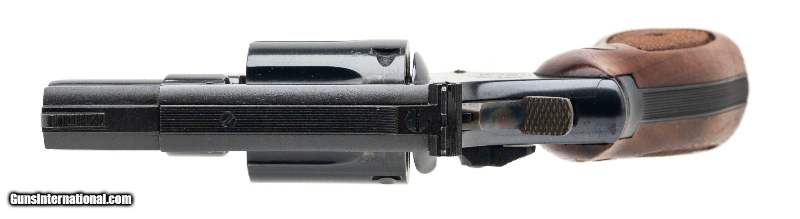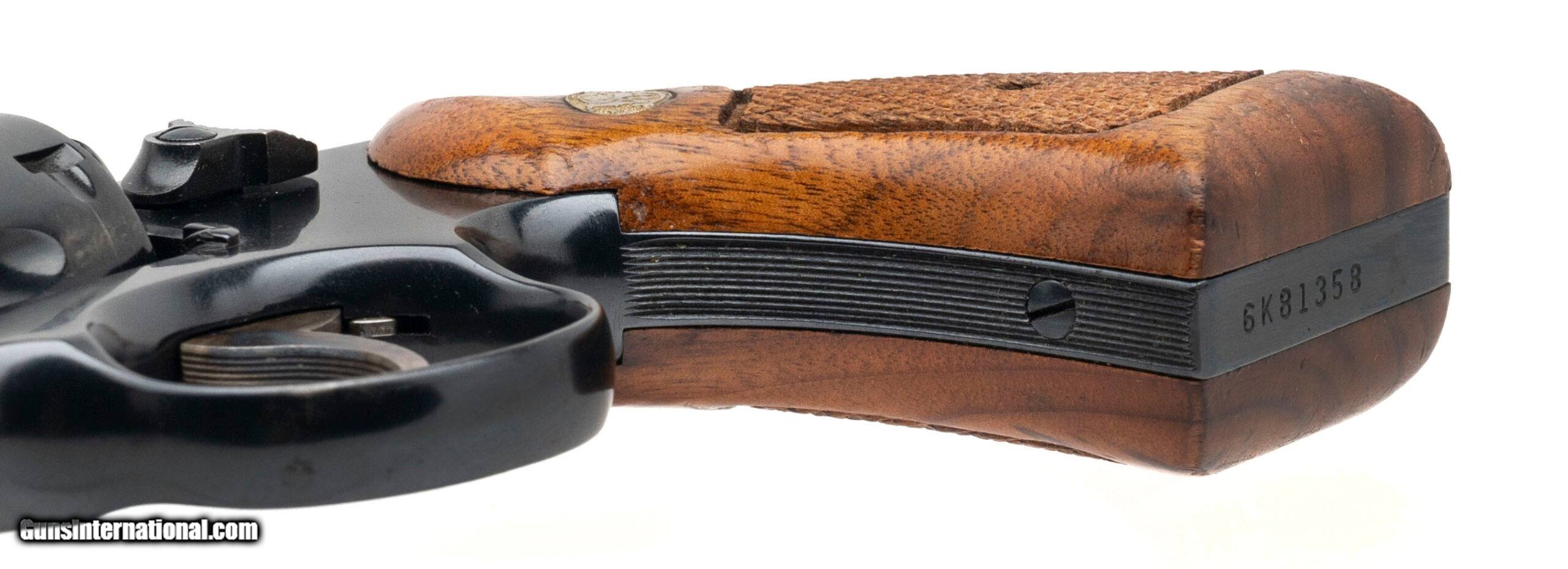 Description: "SN: 6K81358. 1974 production, .38 Special with a 2"" pinned barrel. Bore is bright with strong rifling. Blued k-frame snubnose revolver with squared butt frame grip. Finish shows wear on barrel, cylinder, and light speckles on the right of the frame with most of the original blue finish being present. Overall condition is very good. Price: $895.00 Contact Seller |