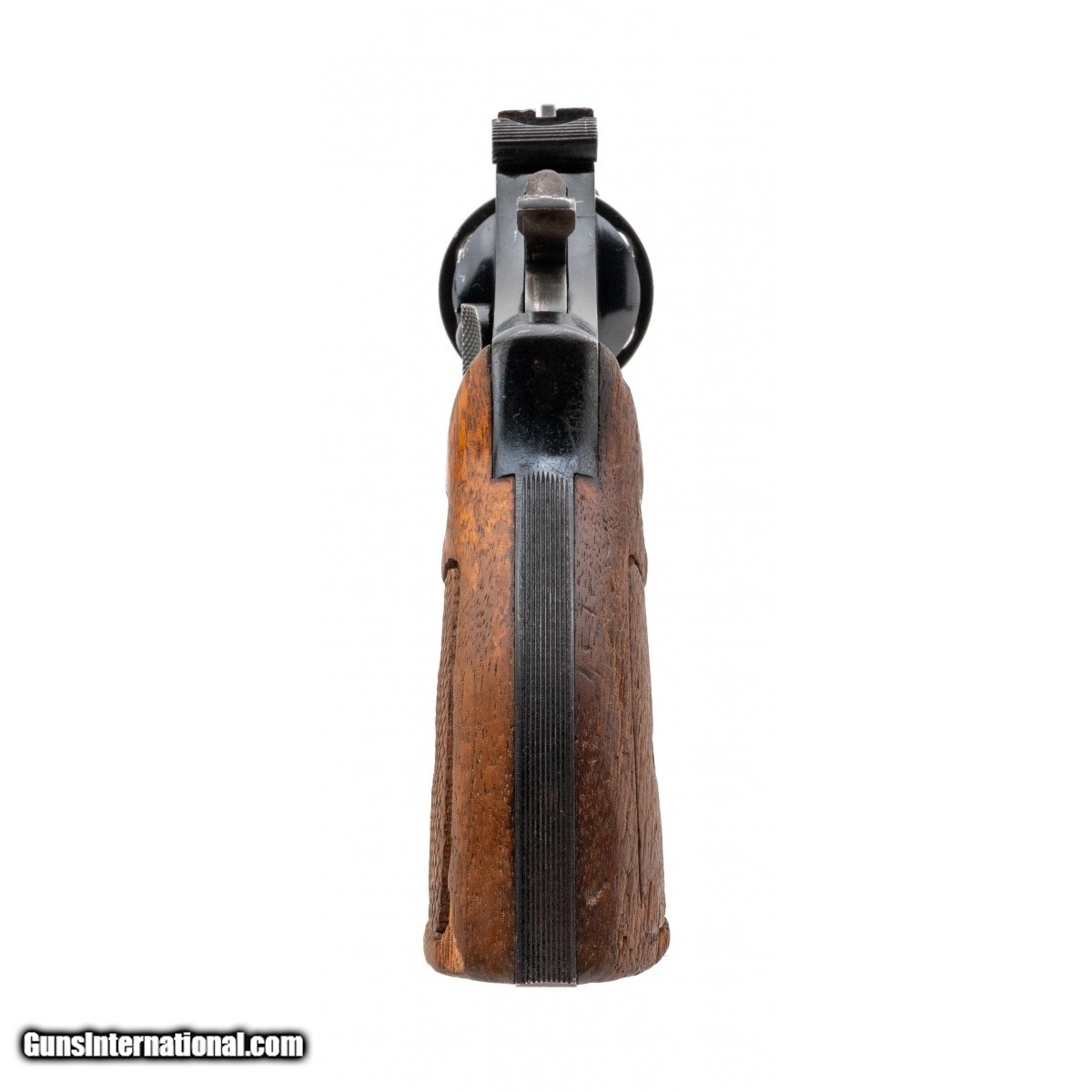 Description: " SN: K833442. Made circa 1970's. .38 with a 4"" Pinned barrel. Bore is bright with strong rifling. K frame S&W revolver. Revolver shows substantial holster wear while retaining 70% of factory blue, left side of frame is stamped ""S.C.P.D."" under the cylinder. Grips show expected handling wear. Action functions properly. Overall good condition SOLD |