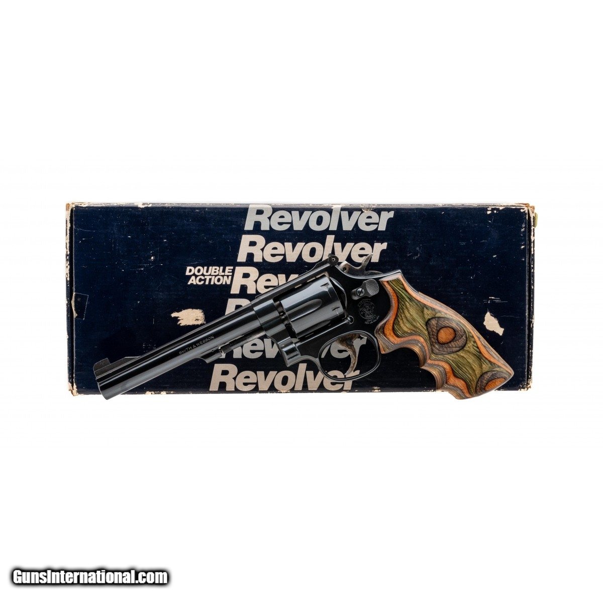 SN: AJY2996. Made in the 1980's, .38 Special with a 6"" barrel. Unusual Model 15 made with a 6"" barrel, these were only available for a few years. Has replacement laminated grips. The action has been tuned by Teddy Jacobson and his ""T"" mark is on the frame. Excellent condition with box and tools.