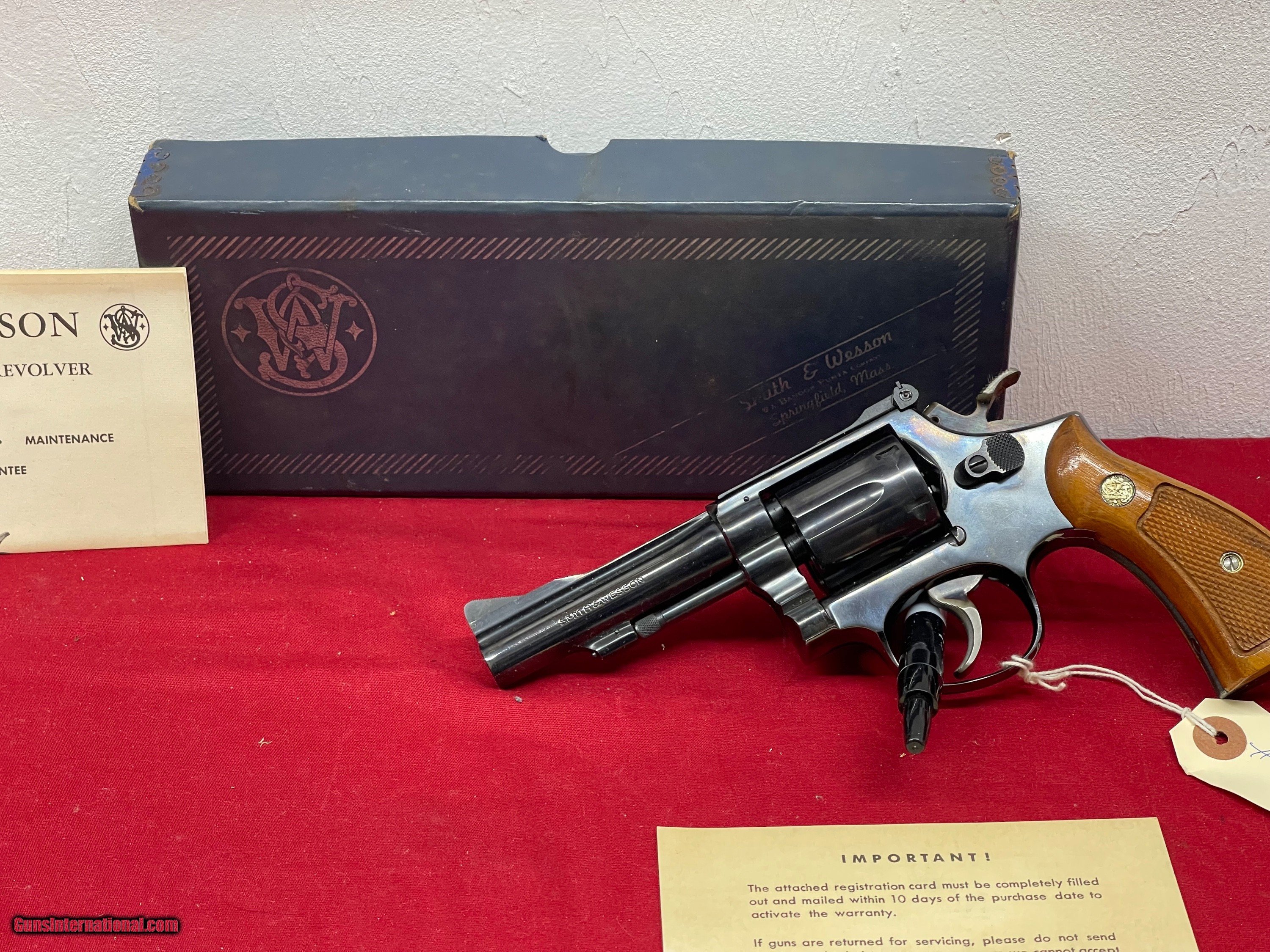 Description: Another great item from Gainesville Pawn! Up for sale is a Smith & Wesson 15-3. This gun is like new in it's factory box. Beautiful blue and case colors, 38 Special Target sights, Target trigger, Target hammer. *Please be aware that all items are sold “AS IS”. Ask questions BEFORE placing a bid. Feel free to call us at our store (352) 240-6452 or email us at Gainesvillepawn(at)gmail(dot)com with ANY questions. We do not accept trades or offers through Guns International We only entertain trades and offers through our store. $35 shipping and handling. Insurance extra. We only accept USPS money orders and major credit cards for payment. 3% convenience fee for credit cards. WE collect Florida state sales tax for in state sales. Please be aware that this item is for sale in our store as well as the occasional gun show so it may be sold there at any time. We will not ship the item until you have your dealer/receiving store email us a signed copy of their FFL to gainesvillepawn(at)gmail(dot) SOLD Handgun Caliber: .38 Special Manufacturer: S & W Model: 15-3 Serial Number: 1k11969 Barrel Length: 4 inch Condition: Excellent Metal Condition: Excellent Wood Condition: Excellent Bore Condition: Excellent |
