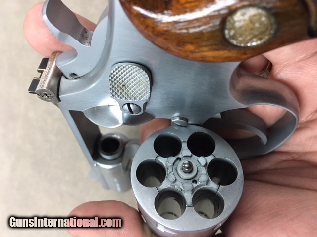 Description: This factory S&W Model 15 revolver was originally nickel finish and then went to Metaloy for their wonderful custom hard chrome treatment and it is about perfect since returned from them. Metaloy is the first Industrial Hard Chrome finish we ever saw years ago and it wears like no other finish - it just does not wear out. Revolver is perfect in all respects and in perfect working order. SOLD |