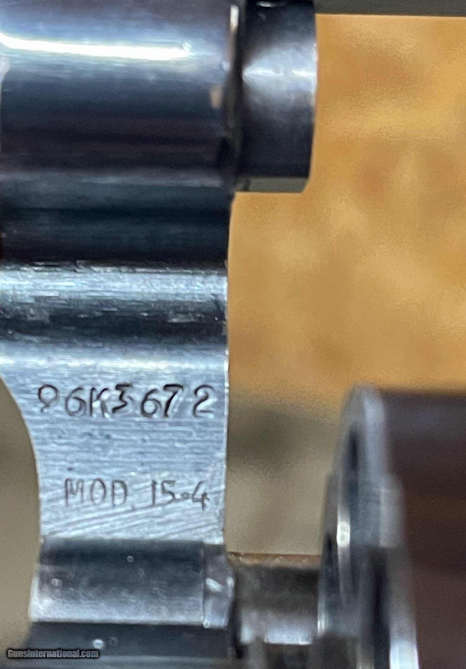 Description: These snub 15's are getting hard to find. This one is in excellent condition. 2 in full lug pinned barrel, target sights, blue finish, and k frame service grips. No box. Please email with questions. Shipping and insurance included (west coast add $75). SOLD Manufacturer: Smith and Wesson Model: 15-4 Barrel Length: 2 in Condition: Used Metal Condition: Excellent Wood Condition: Excellent Bore Condition: Excellent Action: Da, sa Finish: Blue Sights: Target Item Location: 37075 |