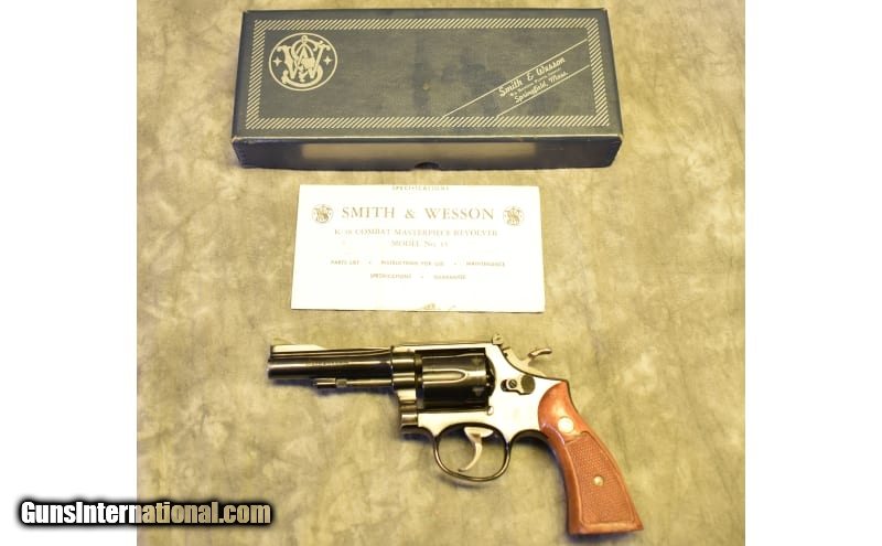 Description: Smith & Wesson .38 Combat Masterpiece 15-3, blued finished, 4" barrel is in very good condition. Comes with the original box and manual. .38 S&W Special SOLD Chambers: 6 Metal Condition: Very Good Wood Condition: Very Good Bore Condition: Very Good Barrels: 4 Inches Weight: 2 lbs Item Location: Little Rock, AR |