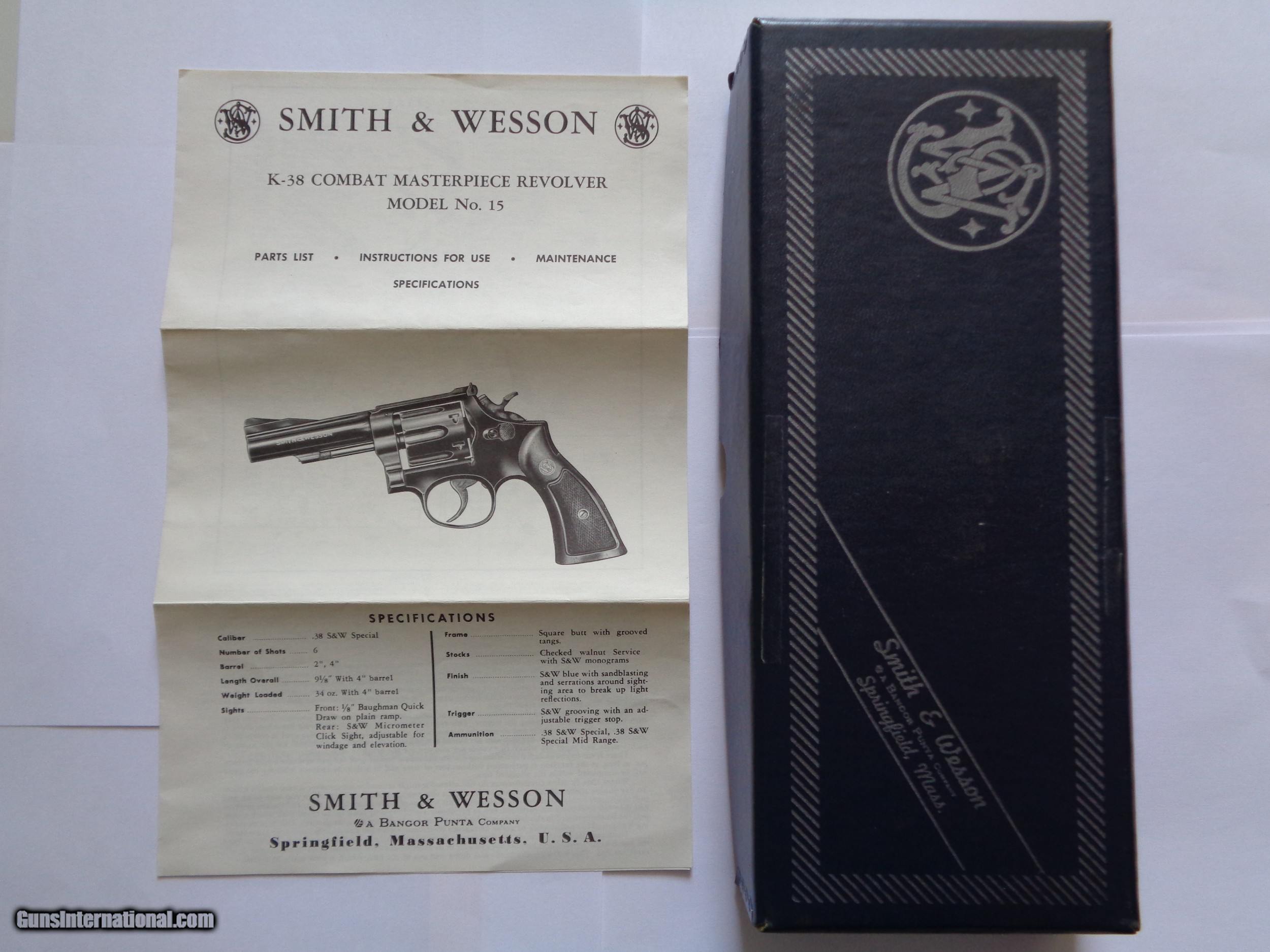 Smith and Wesson K-38 Combat Masterpiece Revolver/ Model-15 - Box - Owners Manual - Warranty Card.
