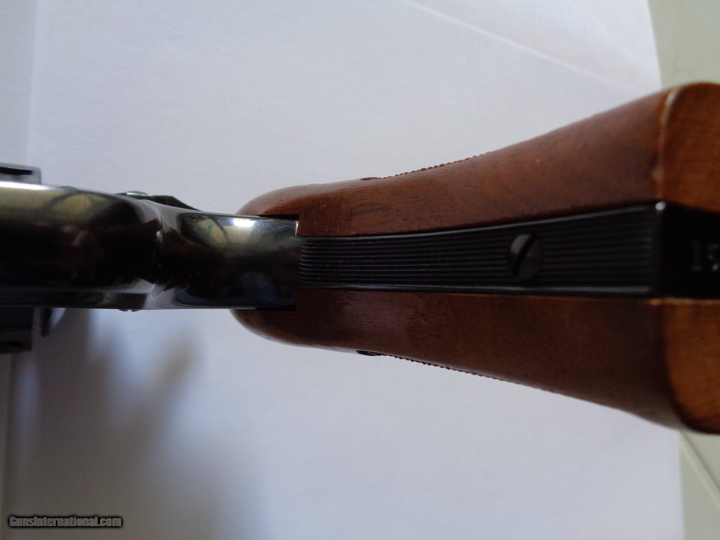 Description: S & W Blue Finish, 6 shot with adjustable sights and a 4 inch barrel. Walnut stock with S & W monograms. Manufactured in 1979 Model # 15K2334 Excellent Condition! $ 895.00 includes shipping to FFL only. SOLD Handgun Caliber: .38 Special Manufacturer: Smith & Wesson Model: 15/K38 Serial Number: 15K2334 Barrel Length: 4 inch Condition: Excellent Metal Condition: Excellent Wood Condition: Excellent Bore Condition: Excellent |