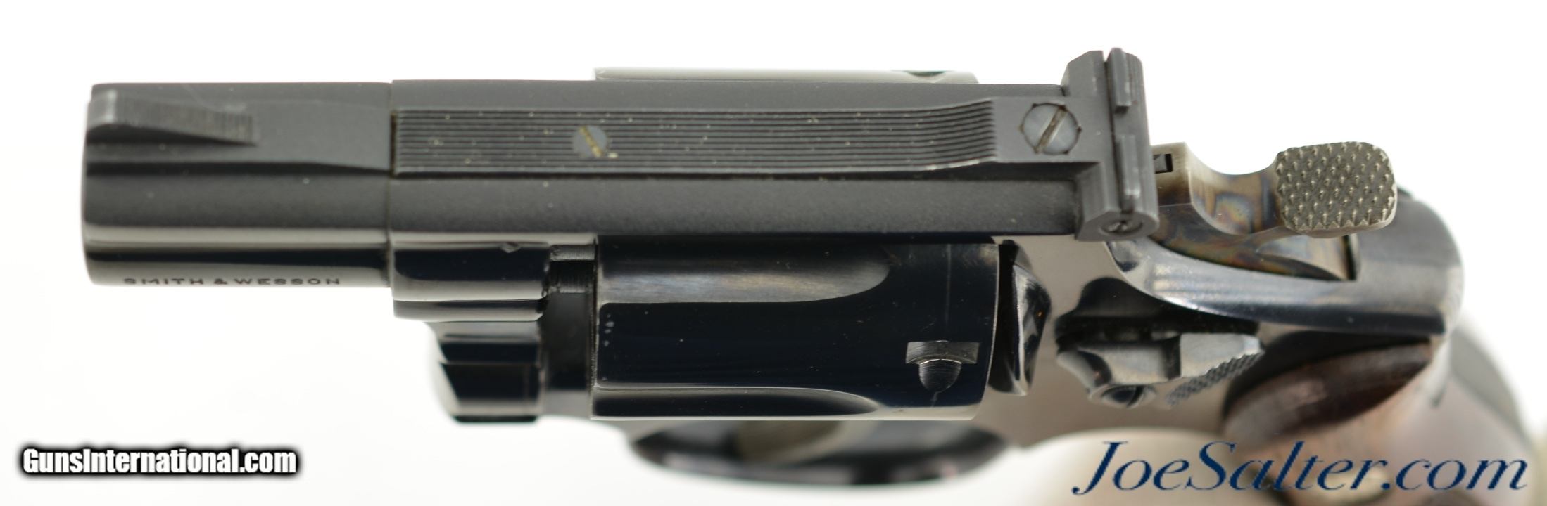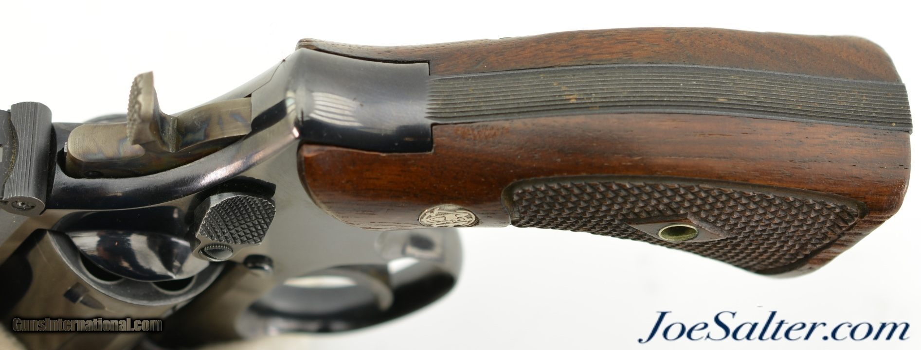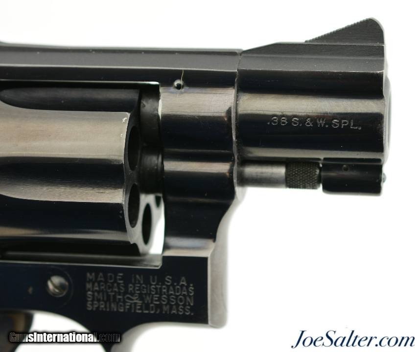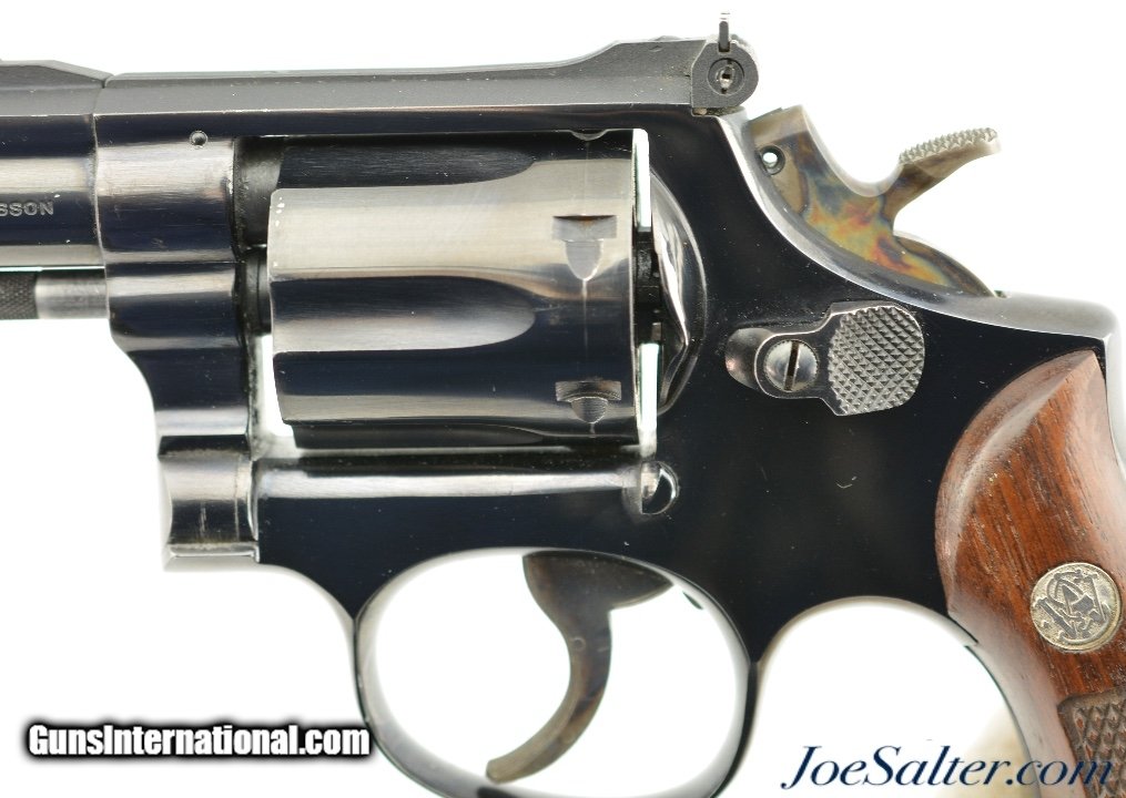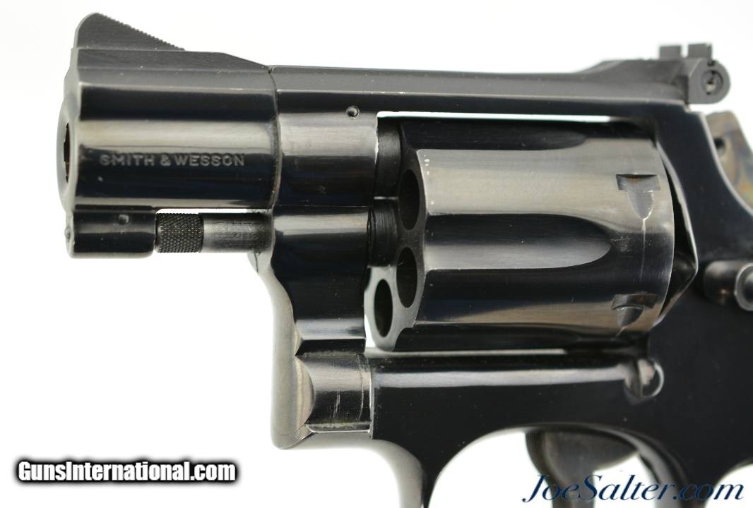 Description: Serial #K612547, .38 Special, 2 inch heavy pinned barrel with a bright, excellent bore. This is the Smith & Wesson Model 15-2, the K-38 Combat Masterpiece revolver manufactured between 1964-67 featuring a serrated trigger, a rare option as identified by Supica & Nahas in The Standard Catalog of Smith & Wesson. In excellent condition the barrel and frame retain about 95-97% of the original blue finish with some silvering on the high edges, a very slight turn ring and very mild use marks. The trigger and hammer show generous amounts of case color. The Diamond Center Checkered Walnut, Square Butt grips are numbered to a different gun but remain in near excellent condition with some flattening of the points and some missing chips to the bottom of the left stock. Overall an excellent K-38 combat Masterpiece. FFL or C&R SOLD Curio/Relic: Yes |