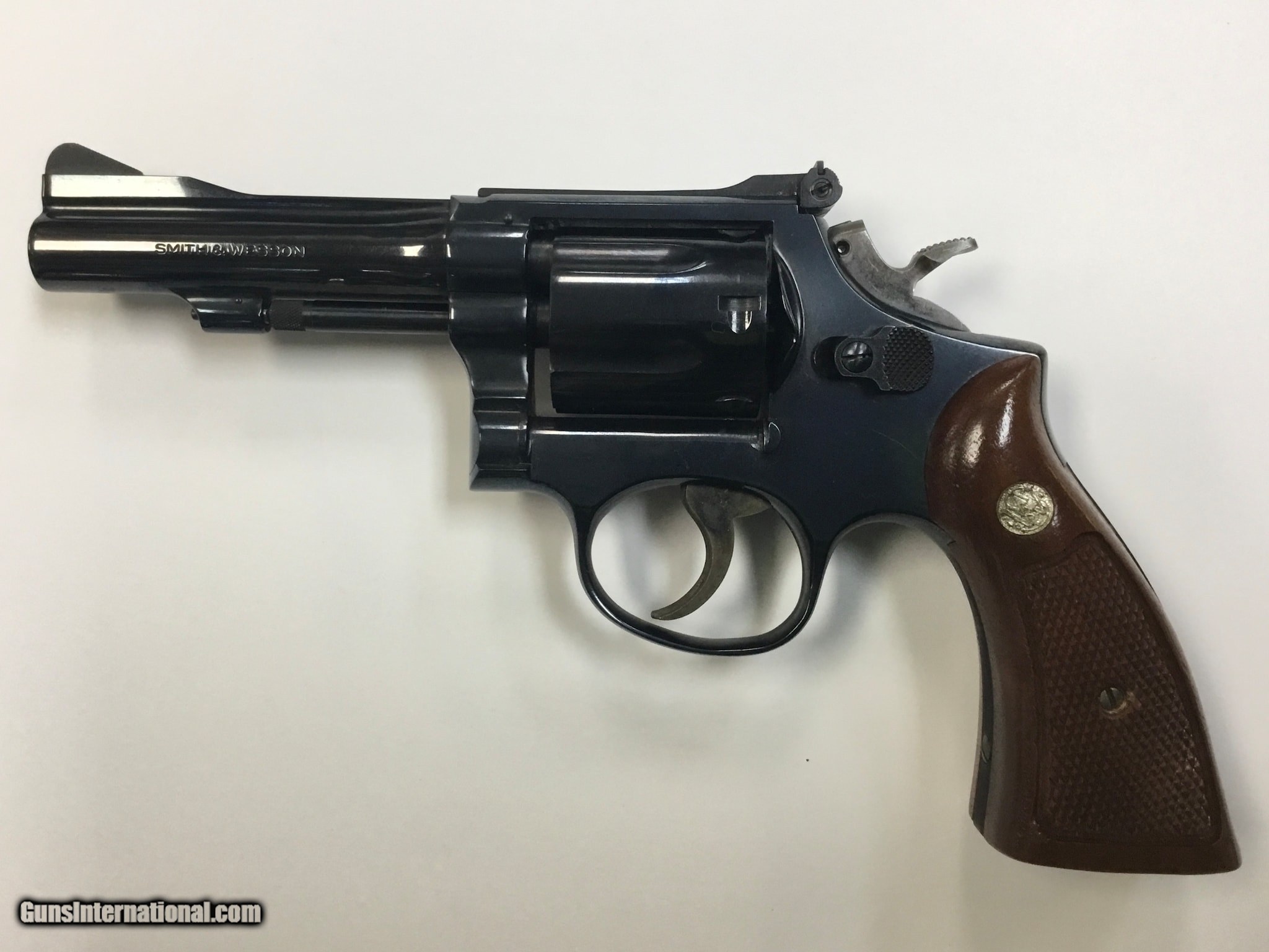 Description: Guns Listing ID: 1233784 Smith & Wesson Model 15-3 revolver chambered in 38 special with a 4\" barrel. I can‚‚t say for sure but I don‚‚t think this gun was ever fired, it is too clean. The bluing is in excellent condition, the cylinders and bore are both totally reflective with no residue anywhere. The only marks on the entire gun are a very thin line on the cylinder from where the cylinder stop drags against it, and on the inside of the action where the cylinder closes shut. These are more than likely from the cradle being opened then shut again, as they are much more pronounced in guns that have seen use. The grip is also in excellent condition, and the sale includes the original box and wax paper packaging. This is perhaps the cleanest 15-3 you will ever se SOLD Manufacturer: SMITH & WESSON Model: 15-3 Caliber Info: .38 SPL Condition: Used - Non-Certified Barrels: 4 BARREL Finish: BLUED |