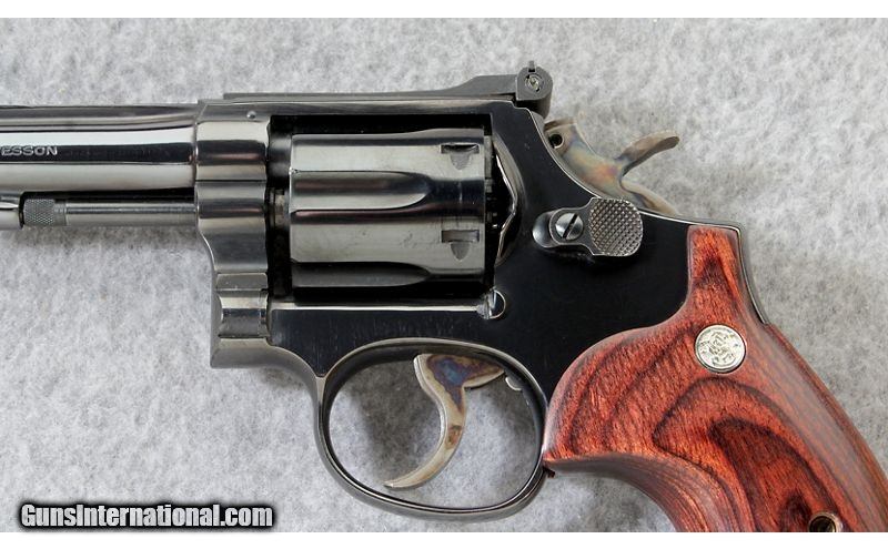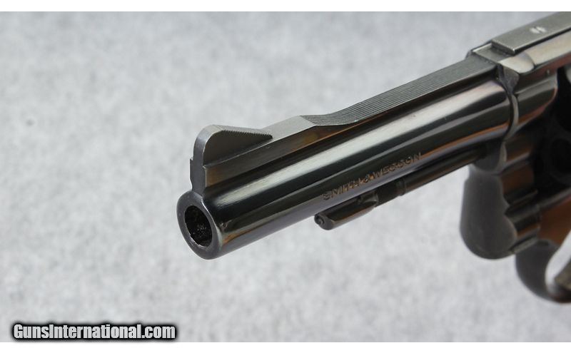 Description: The Smith & Wesson Model 15-3 K38 Combat Masterpiece, built on the S&W medium K frame, features a high polished bright blue finish, double action, six shot cylinder, 1/8" Baughman Quick Draw on plain ramp front sight and the S&W Micrometer Click Sight rear sight adjustable for windage and elevation. Manufactured 1977. .38 Special SOLD Metal Condition: Excellent with a turn line on the cylinder Wood Condition: Aftermarket grips in excellent condition Bore Condition: Excellent Barrels: 4 inch pinned barrel Triggers: Double action Weight: 35 Oz. Sights: Adjustable rear sight with blade front Item Location: Lehi, UT |