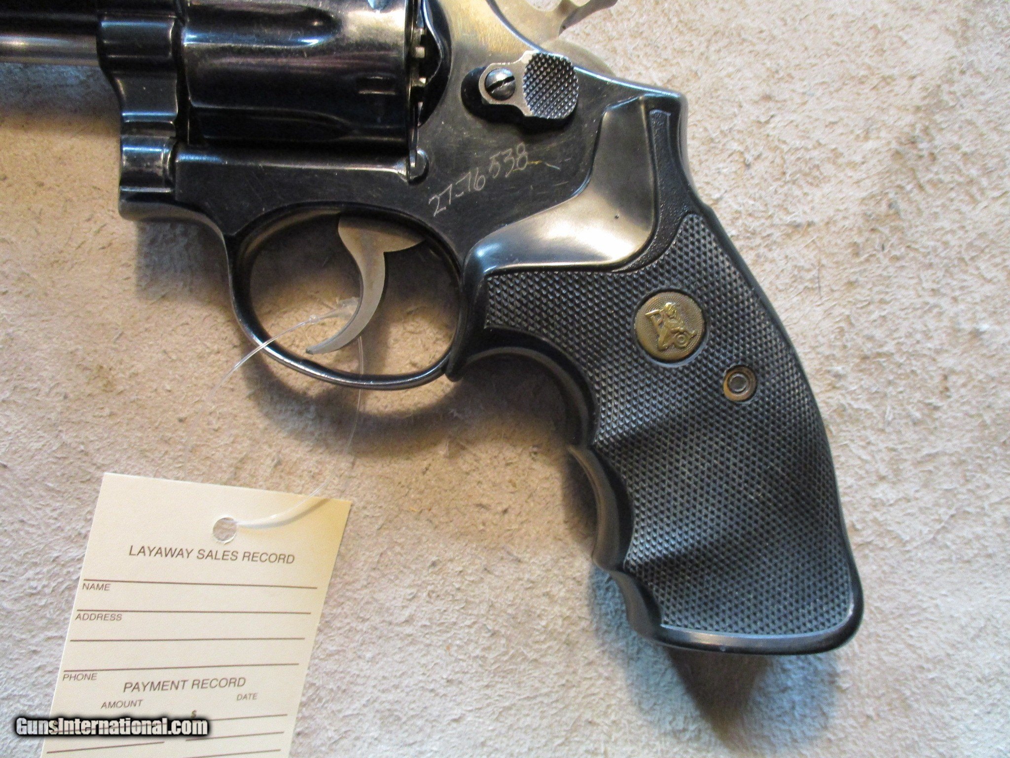 Description: S&W Model 15-3 with a 6" Barrel, blue finish, 6 shot. The consinger broght in two of them, said they were Navajo Nation police guns, but I have no paperwork to prove it. Has rack numbers engraved on the left side. SN is 8K673xx. Been carried but not shot a ton. We will trade for silver and gold. We accept personal check, any certified funds, Venmo or Zelle. We can also take your credit card, +3%. has now started collecting tax for states that mandate it, if applicable they will add it to your total. Email me if you would like these pictures sent to you, they will come through bigger and better than on the listing page here. We do offer Layaway. Our standard terms are 25% down, 90 days. Initial deposit is not refundable. Email me with any questions. Please check your local laws to confirm it is legal to own in your state! Buyer pays $25 shipping and insurance to your FFL in the lower 48. AK, HI or PR is extra. I will ship to California, NO PROBLEM! All my guns come with a non-firing, 3 day unconditional return privilege, from the day UPS delivers to your dealer. Buyer pays shipping both ways if the gun comes back. We can add a new hard case by PLANO for secure shipping for $30 if the buyer wishes (highly recommended, cheap insurance, really helps keep the UPS monster from eating my guns!). I am a licensed FFL, and will include a copy of my FFL with the gun for your dealer’s records. I will ship to a C&R if the gun is eligible. I will ship to California, but you need to confirm the gun is legal where you are, California or other. WE BUY AND CONSIGN GUNS AND GUN COLLECTIONS! We will travel to pick up collections! I am always looking for good clean, old original Winchesters to buy, consign, or trade, especially Pre '64's model 70's and model 54's. WE ALSO TRADE FOR CLASSIC CARS AND TRUCKS! We also trade for gold and silver. SOLD Handgun Caliber: .357 Magnum Manufacturer: Smith & Wesson Model: 15-3 Barrel Length: 4 Condition: Used |