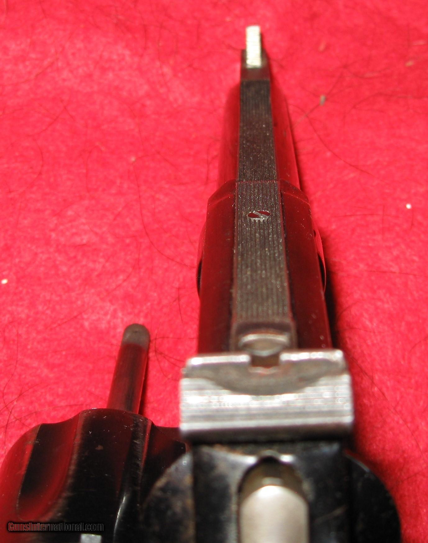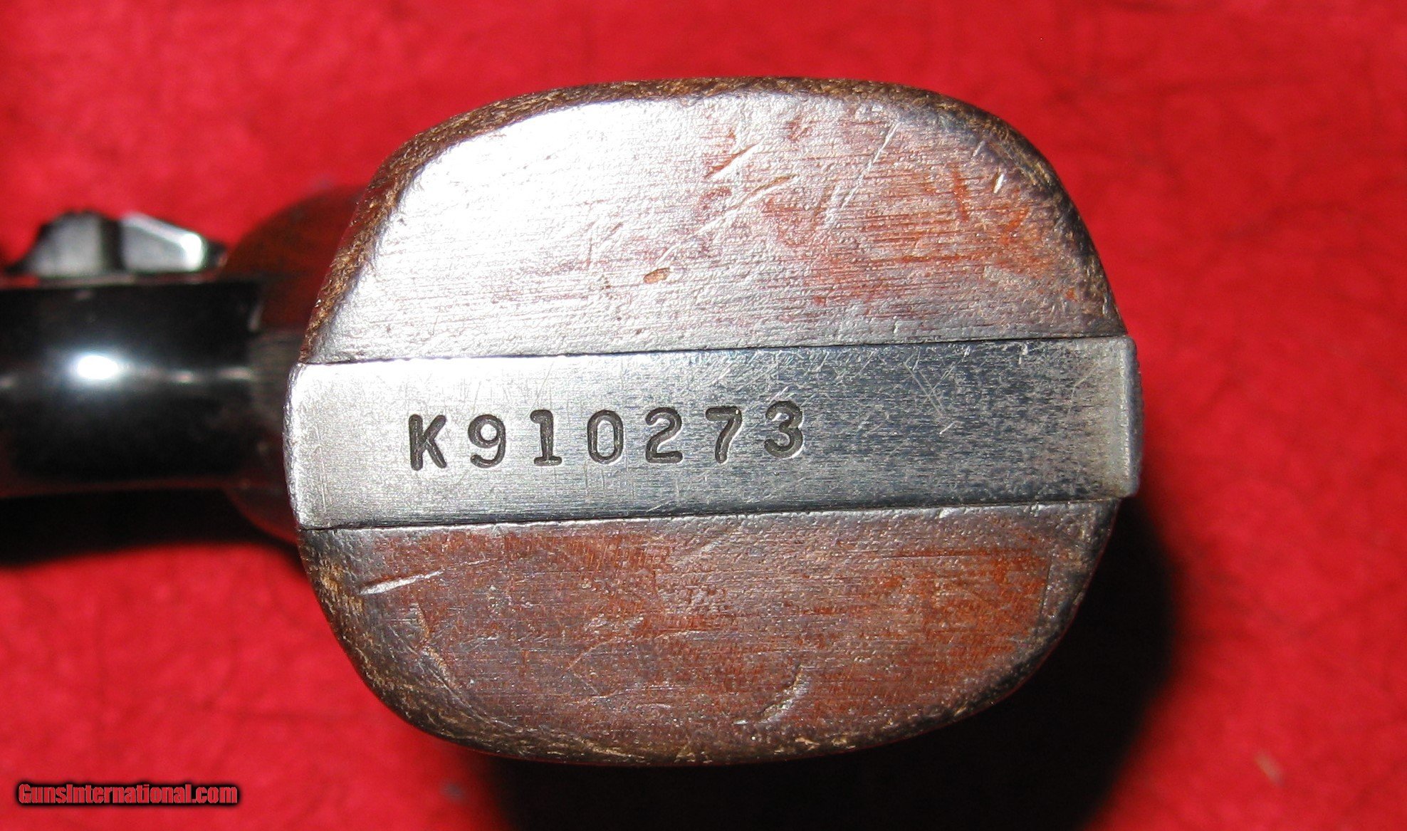 Description: THE SMITH & WESSON BOOK DATES THIS MODEL 15-3 COMBAT MASTERPIECE SERIAL # K910xxx TO 1969. IT IS CHAMBERED FOR 38 SPECIAL. IT'S ORIGINAL BLUE FINISH HAS SOME HIGH SPOT WEAR AND SCATTERED LIGHT FINISH DAMAGE FROM CARRY AND USE. THE SIGHTS ARE THE STANDARD ADJUSTABLES FOR THE K-38. IT HAS A 4" BARREL WITH AN EXCELLENT BORE. IT IS IN VERY GOOD MECHANICAL CONDITION WITH TIGHT ACTION LOCK UP AND A CRISP TRIGGER PULL IN SINGLE OR DOUBLE ACTION. THE GRIPS ARE ORIGINAL BUT HAVE SOME WEAR. SEE PICTURES FOR GRIP AND FINISH CONDITION. SHIPPING IS $50 MY FL TO YOUR FFL SOLD Handgun Caliber: .38 Special Manufacturer: SMITH & WESSON Model: 15-3 K-38 COMBAT MASTERPIECE Serial Number: K910xxx Barrel Length: 4 Chambers: 6 Condition: VERY GOOD Metal Condition: VERY GOOD Wood Condition: GOOD - WORN CHECKERING Bore Condition: EXCELLENT Barrel Type: ROUND Action: SINGLE/DOUBLE Finish: BLUE-FINISH WEAR - SEE PICTURES Sights: OPEN ADJUSTABLE Manufacture Date: 1969 |