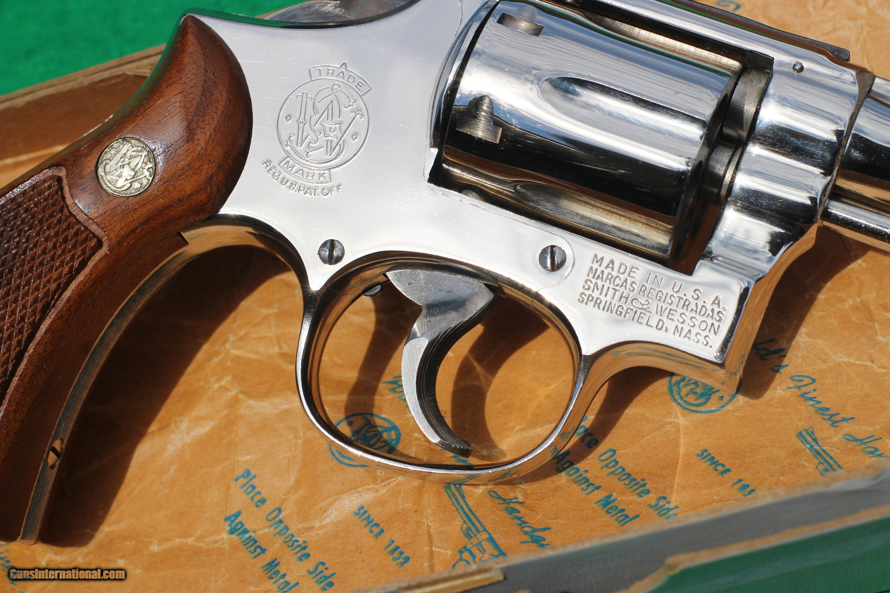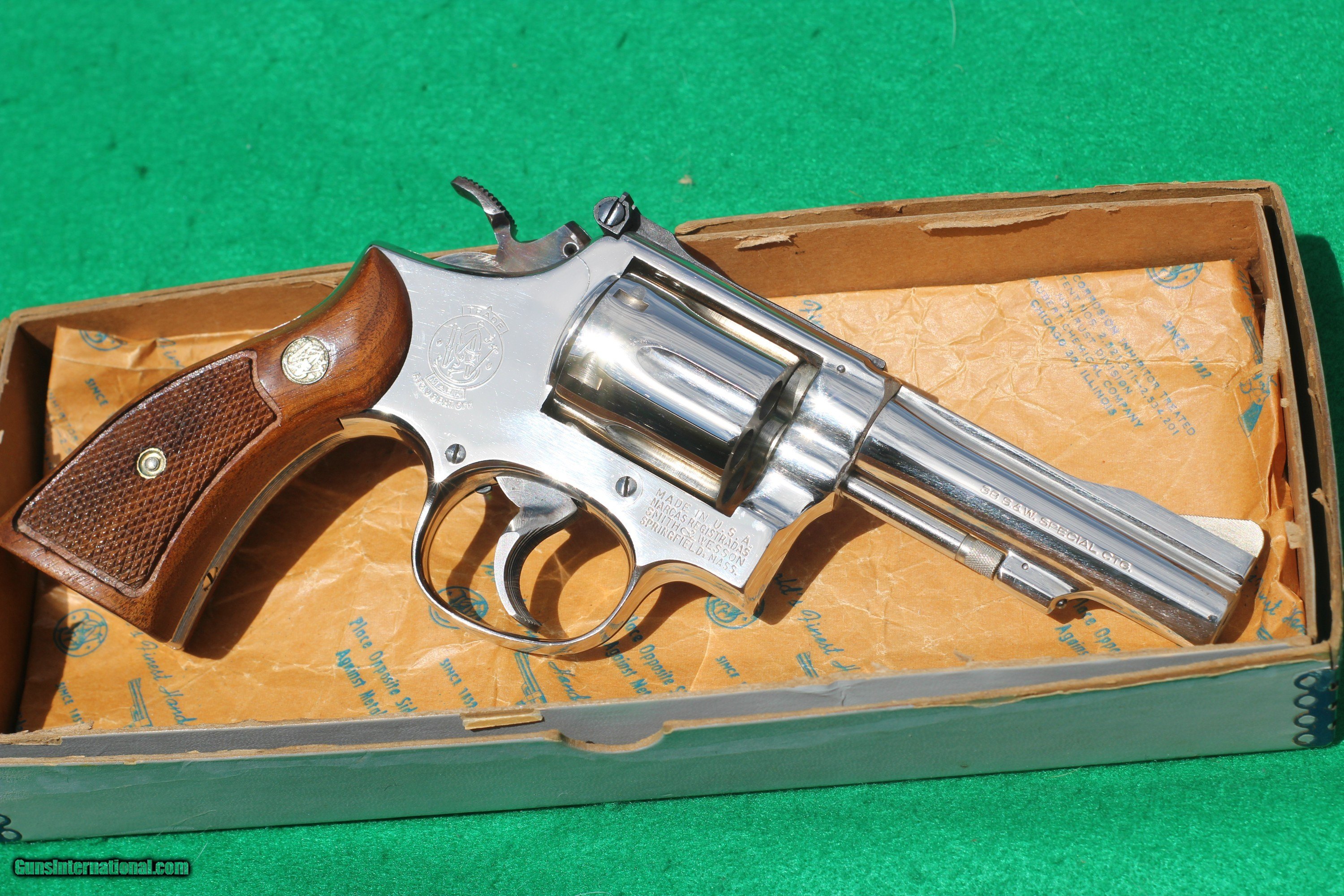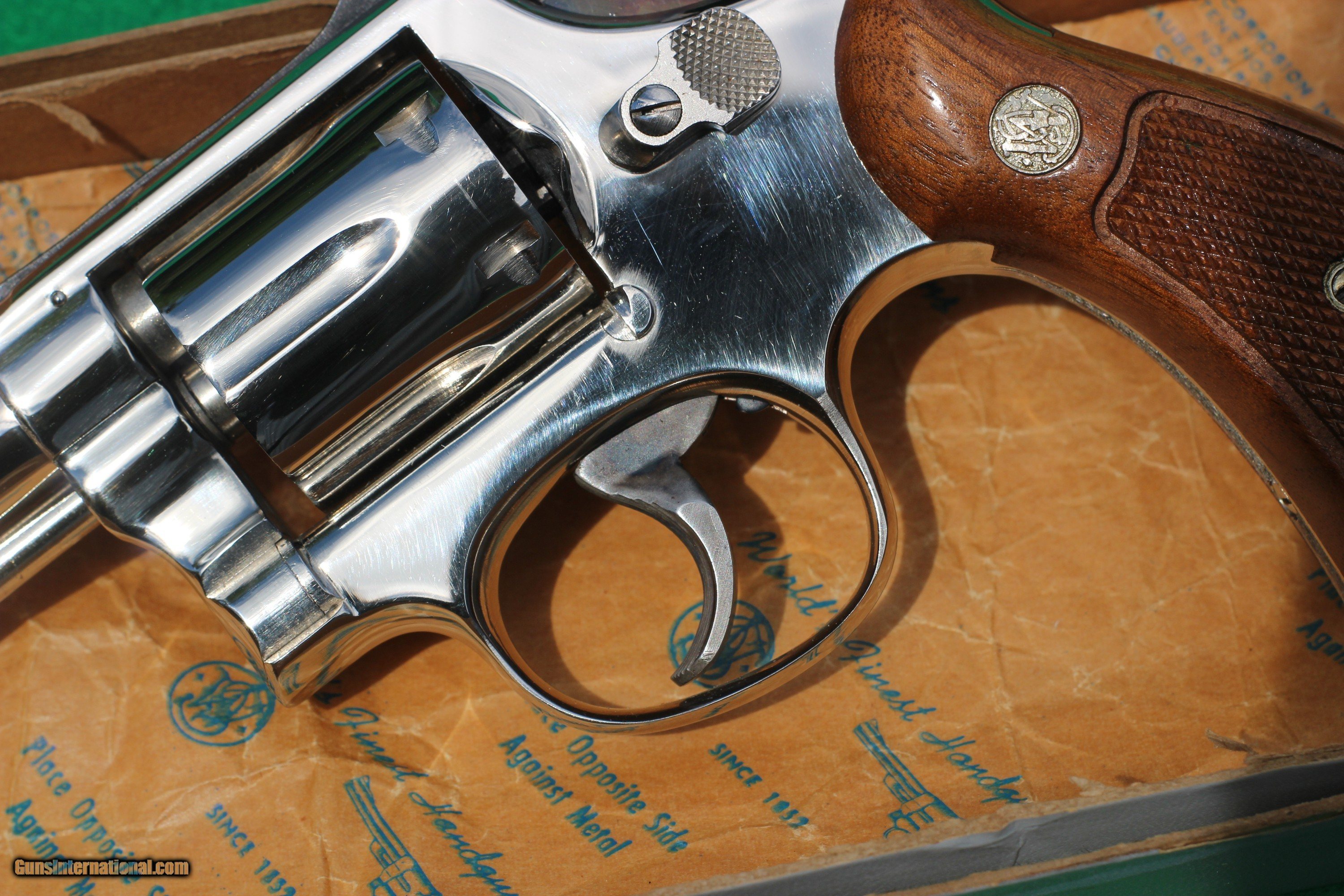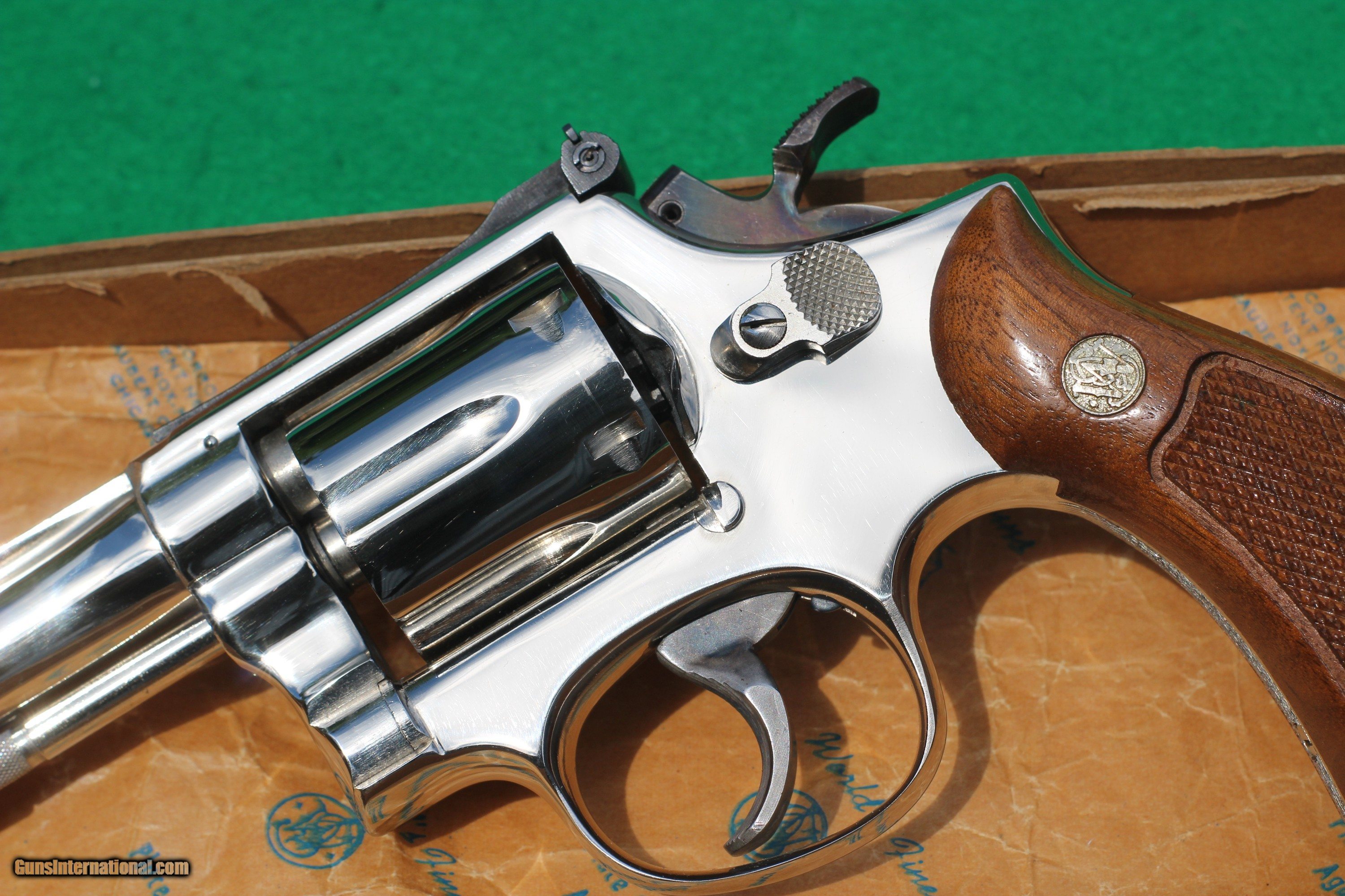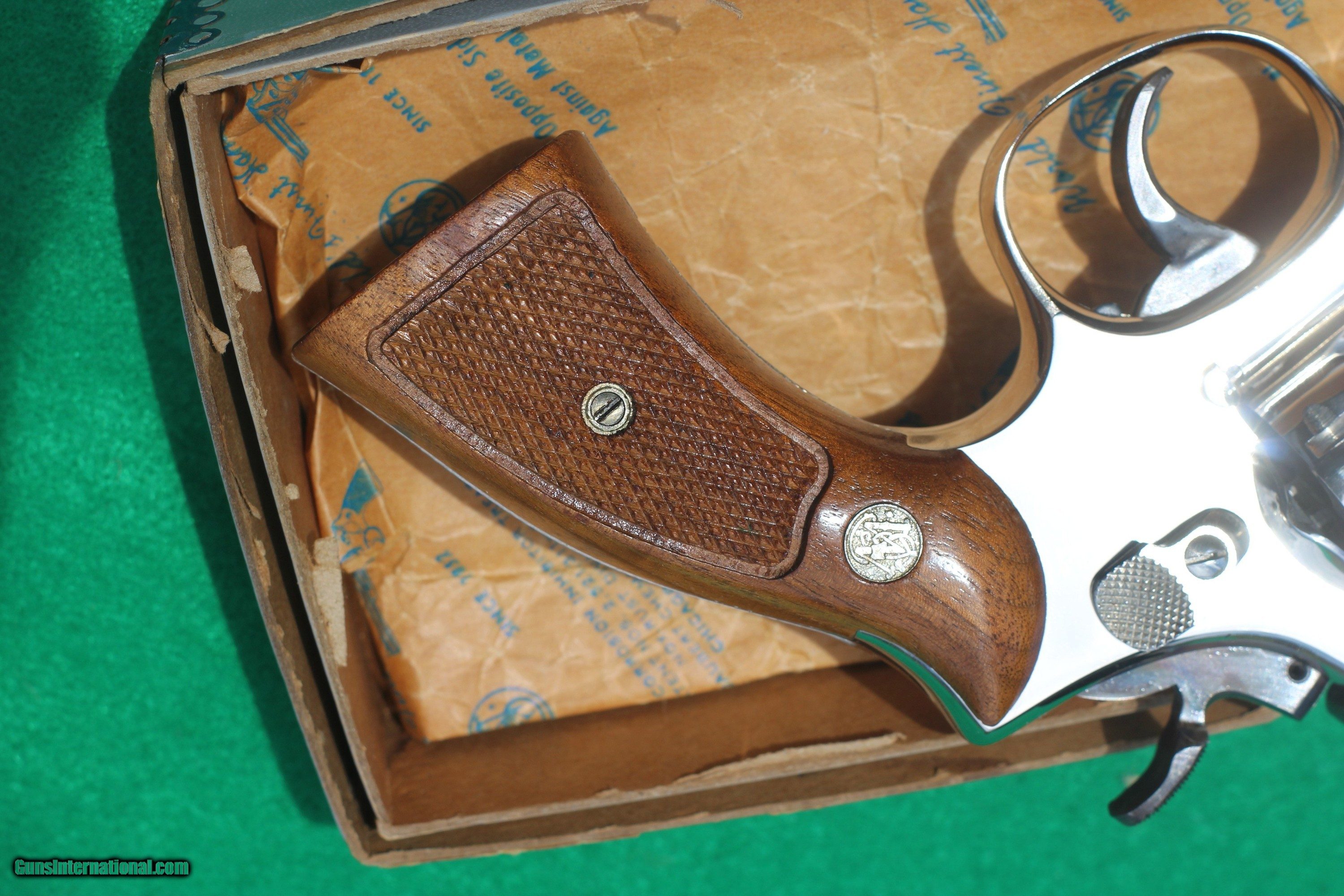 Description: Serial # K800xxx ... circa 1969 Nickel finish 4 " barrel with perfect bore Target trigger and hammer Near perfect condition , with just a couple of storage specks on cylinder Comes with correct matching box $ 995 + Shipping SOLD |