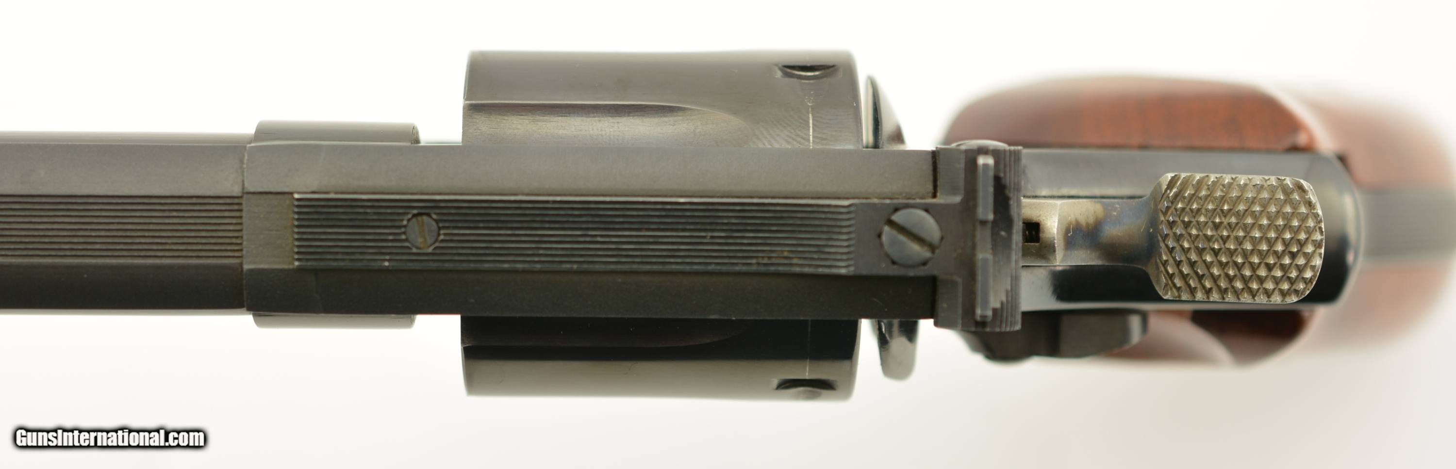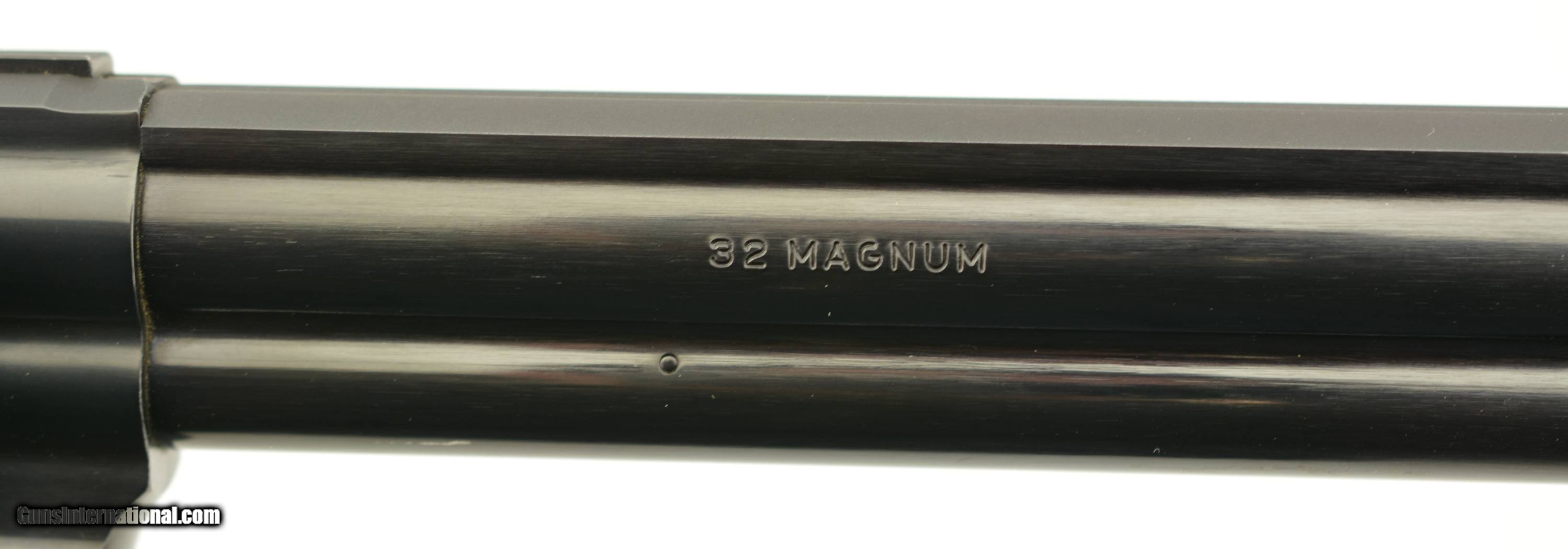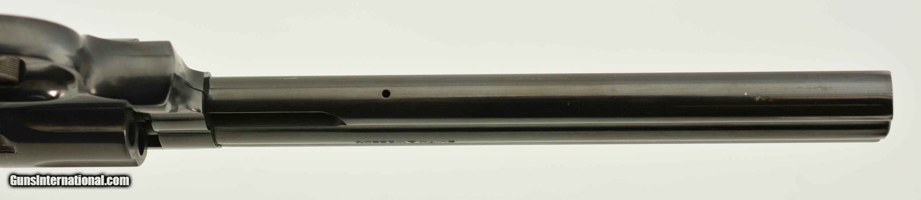 Description: Serial #BFE5934, .32 H&R Magnum, 8 1/4" full lug barrel with an excellent, bright bore. This is a handsome revolver that retains 97-98% of the original blue finish, with some mild silvering at the muzzle, as well as a thin turn-ring on the rear of the cylinder. The target hammer and trigger have retained a commensurate amount of their original color case-hardening, and the finger-groove combat stocks are likewise in excellent shape with no real handling marks or blemishes. The lock-up is tight, and the action functions flawlessly. The revolver is housed in the original numbered S&W box with original wax paper wrap and papers. This is a highly desirable S&W revolver, and is in excellent, little-used condition. FFL SOLD Manufacturer: S&W Model: 16 Serial Number: BFE5934 Caliber Info: .32 mag Gauge Info: .32 mag |