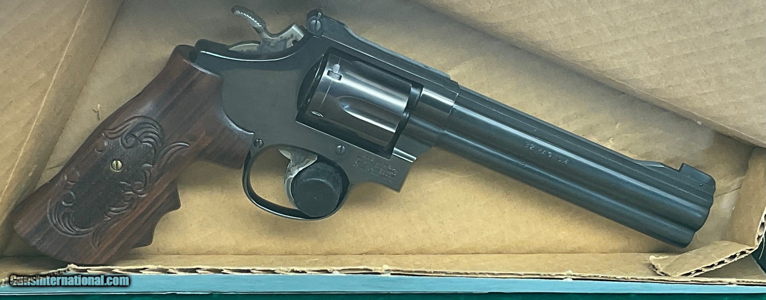 Description: REDUCED TO $1898 /// Scarce S&W model 16-4 chambered in 32 H&R magnum. Will also shoot 32 S&W short and long plus the semi rimmed 32 ACP. still in the original box with tools. Also includes beautiful set of custom grips. $1898 plus $38 insured shipping. 5 month layaway available. No credit cards and no trades. SOLD |