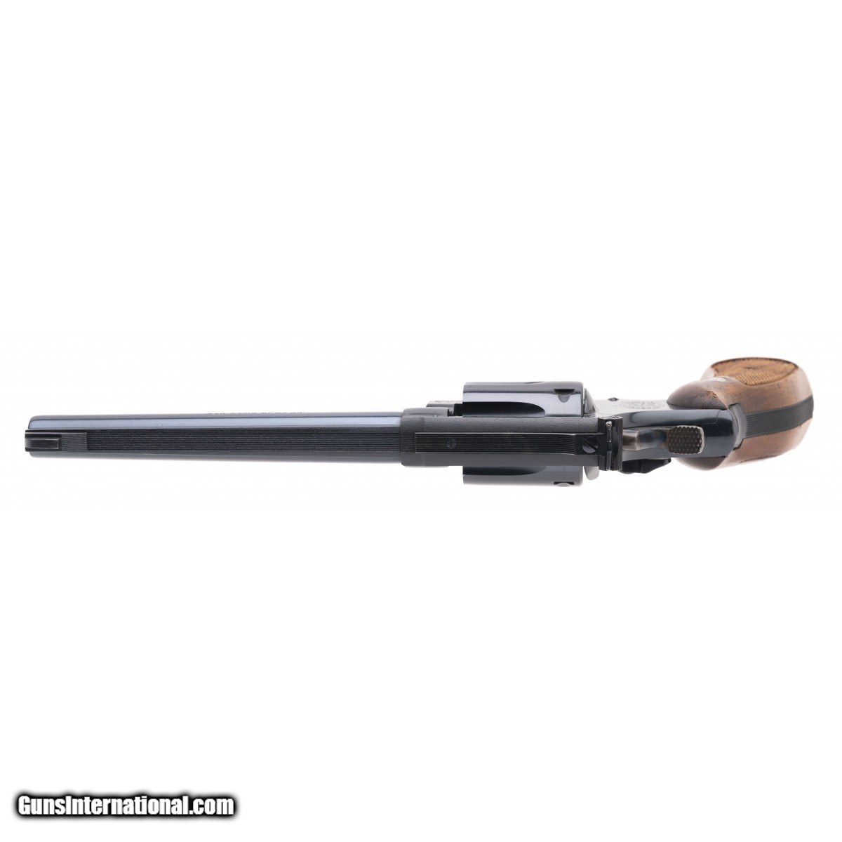 Description: " SN: K786091. Made in 1968. .22 Long Rifle with a 6"" barrel. Revolver with 99% original blue finish, pinned barrel, recessed cylinder, case color trigger/hammer and checkered wood grips. Overall condition is excellent. (Consignment) SOLD |