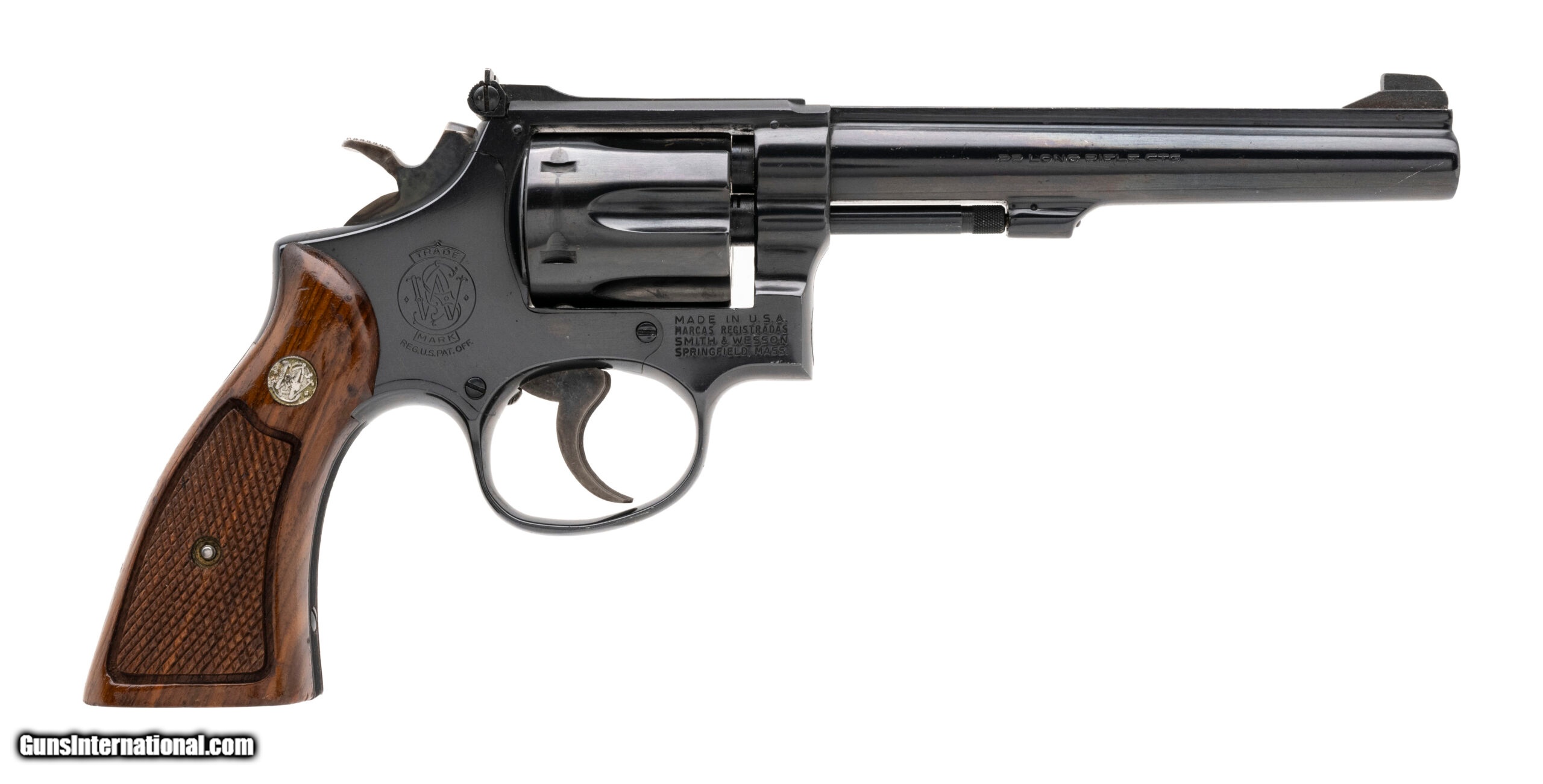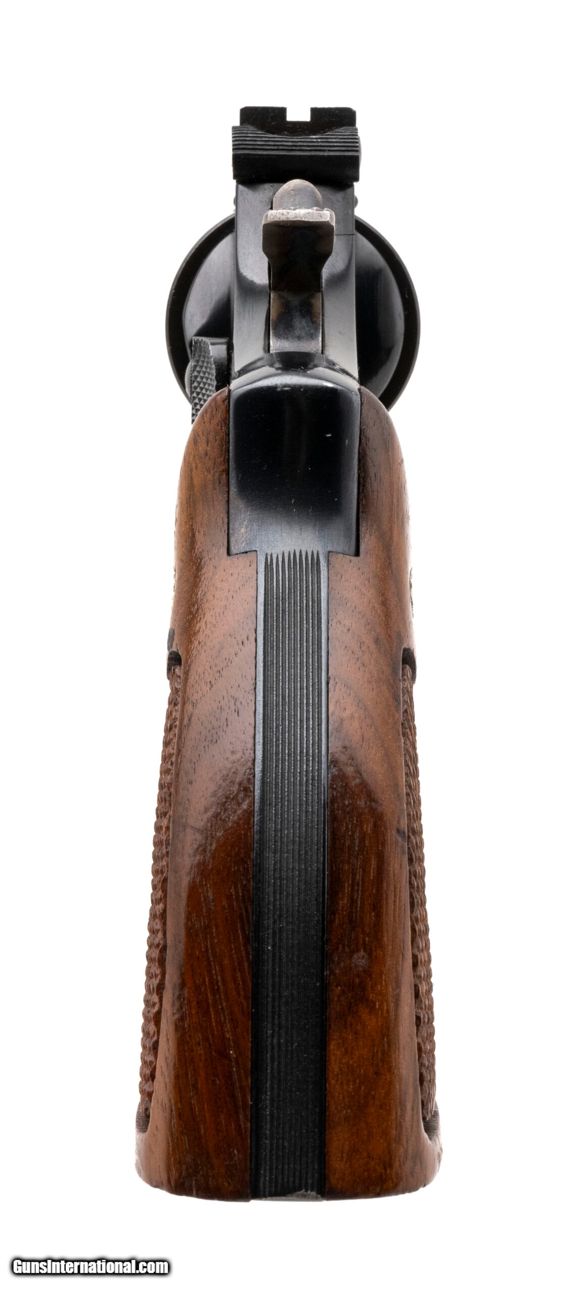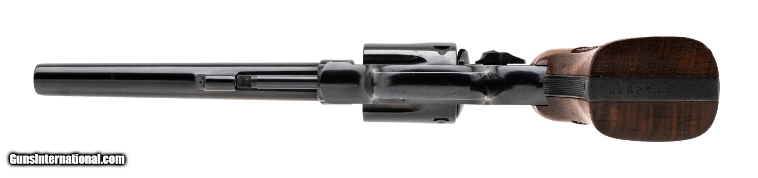 Description: "SN: 8K62433. Made circa 1970's, .22LR with a 6"" barrel. bore is bright with strong rifling. Vintage K22 target revolver with pinned barrel and recessed cylinder. Blued finish shows wear on the cylinder but is in good condition. Wood grips are very good. Overall condition is good. SOLD |
