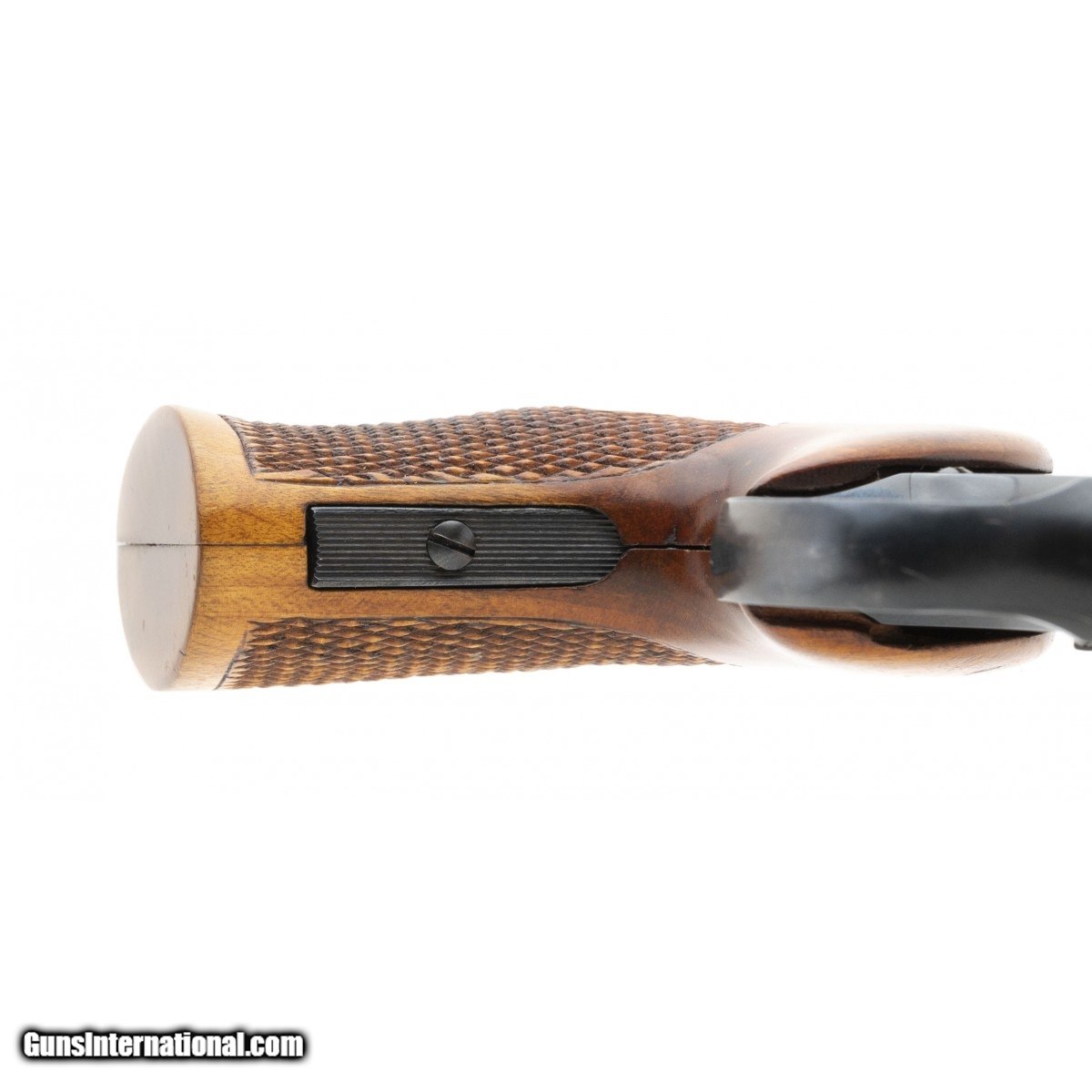 Description: " Target revolver with 6"" barrel and adjustable rear sight. Bore is excellent. Grips are very good quality target style replacements and are nicely checkered. Excellent overall condition. SOLD |