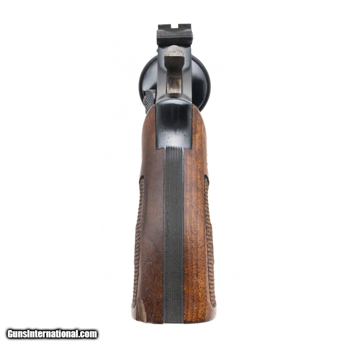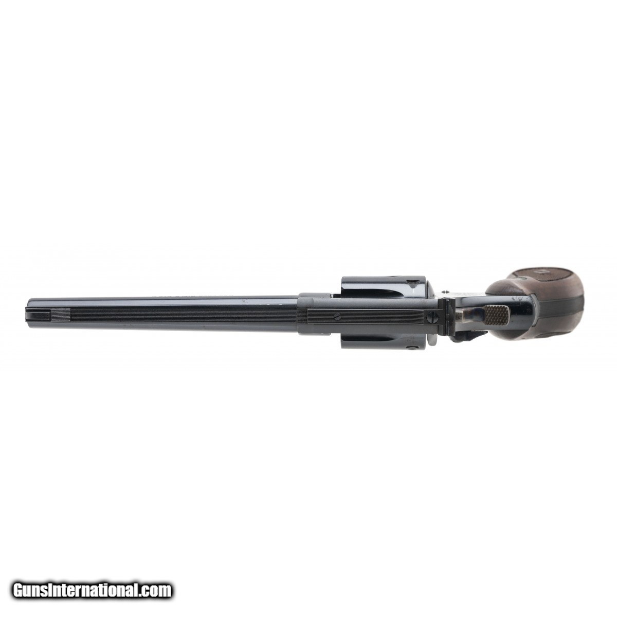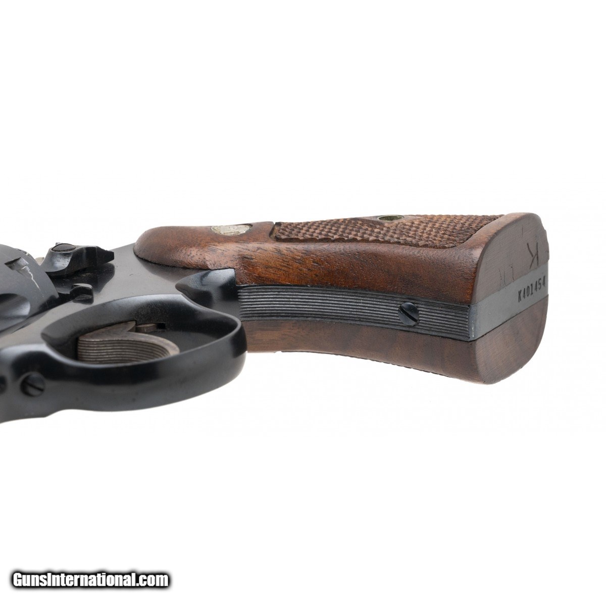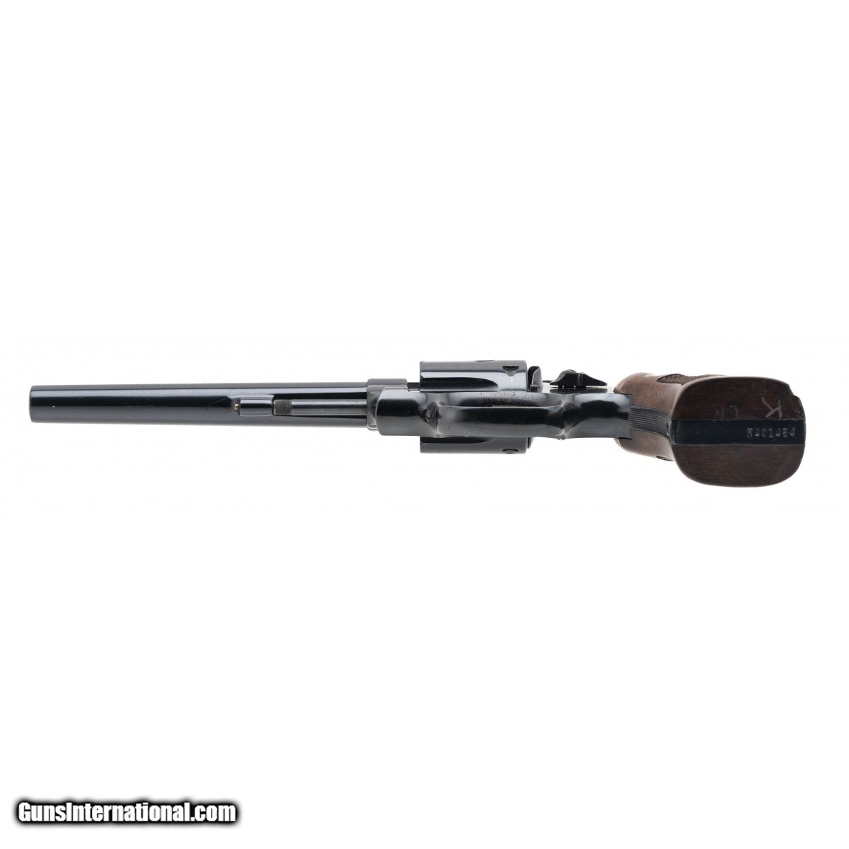 Description: " SN: K401454. Made in 1960. .22LR with a 6"" pinned barrel. Bore is in very good condition. S&W double action 4-screw K22 target revolver. Finish is in very good condition with 90% original blue with wear on barrel. Checkered wood grips are in very good condition with wood chipped on left side of grips and strong wood checkering. Overall condition is very good. SOLD Curio/Relic: Yes |