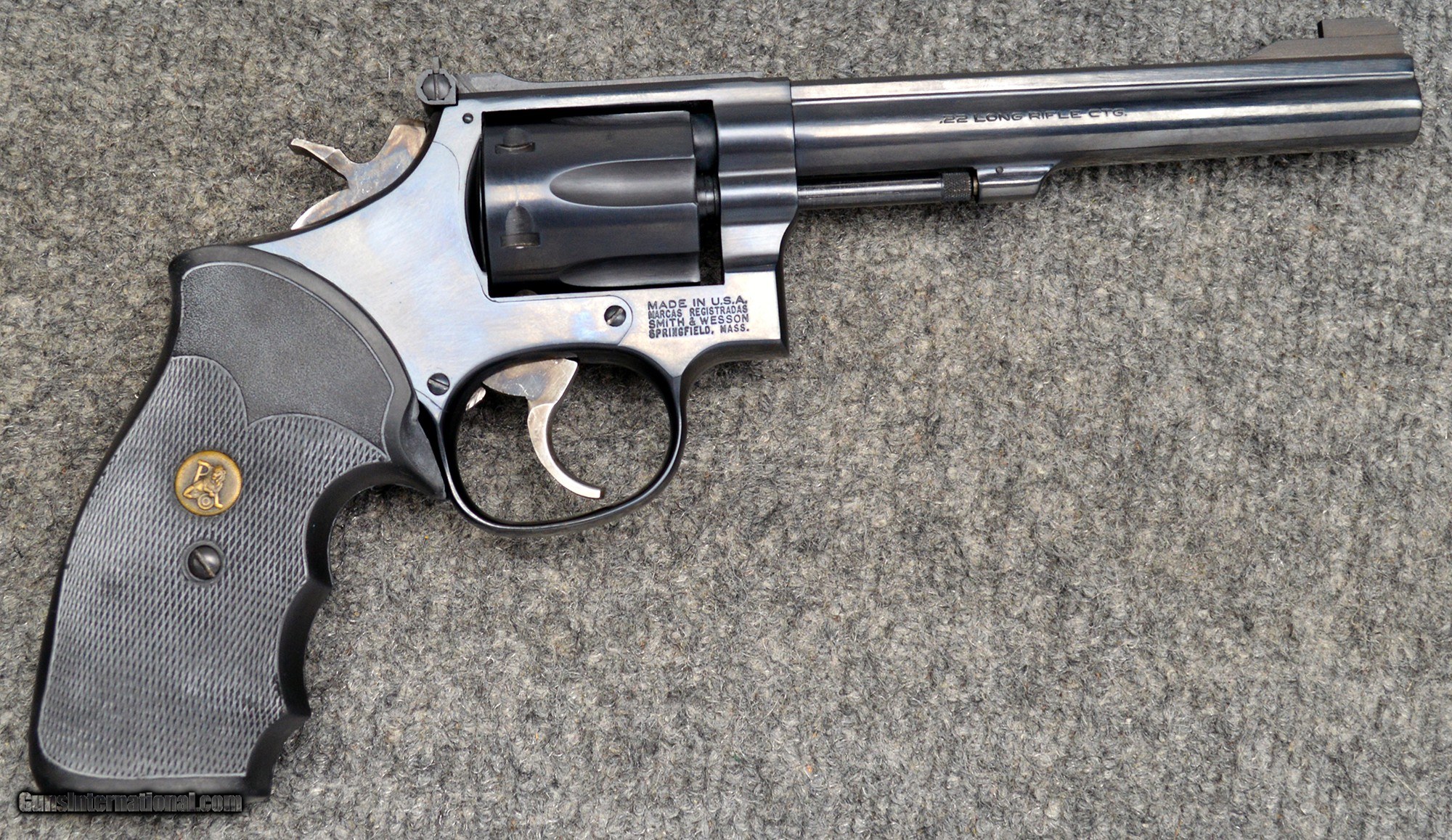Description: For your consideration, a Smith & Wesson model 17-5 chambered in .22 Long Rifle. The chambers are recessed, though the barrel is not pinned. This piece dates to 1987. .22 Long Rifle SOLD Chambers: 6 Metal Condition: Excellent Wood Condition: Excellent Bore Condition: Excellent Barrels: 6 Triggers: Smooth Face Weight: 2.5 lbs Sights: Iron Sights Item Location: Hamburg, PA |