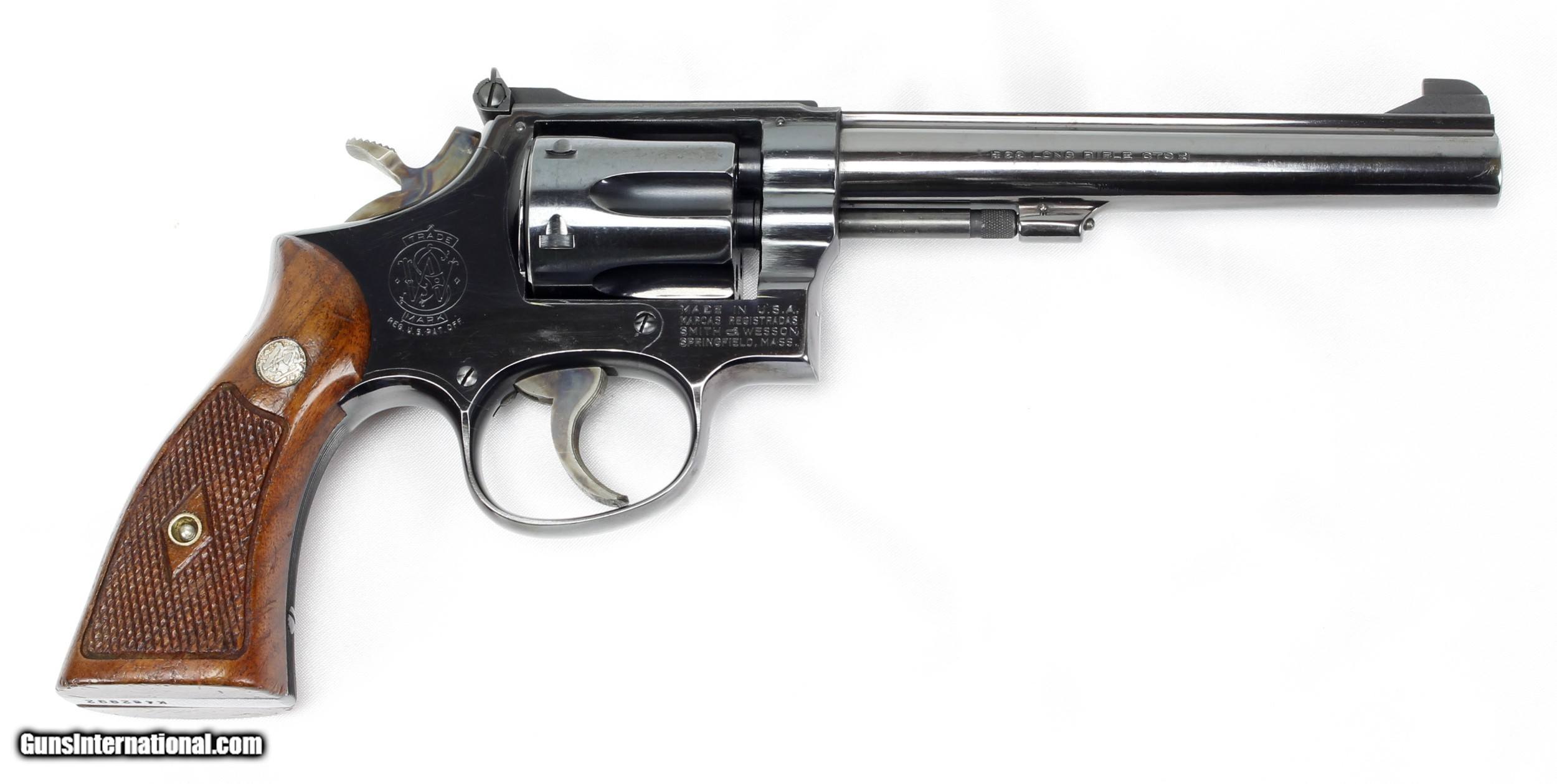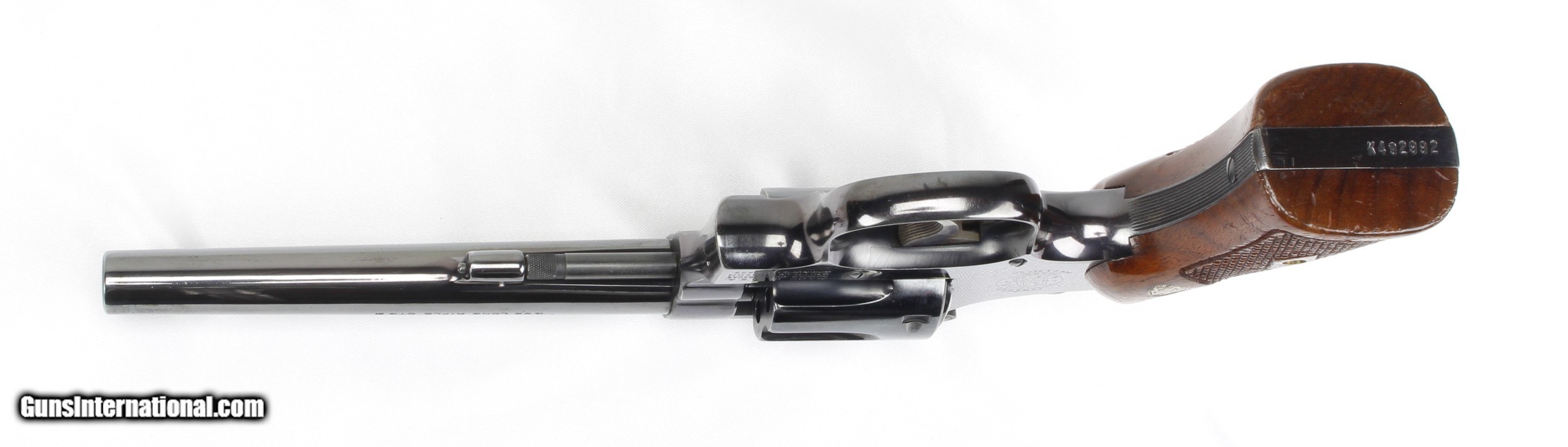 Description: S&W Model 17-2 K-22 Masterpiece in .22LR. SN #K492992. Mfg. in 1962. 6" ribbed and pinned barrel with an excellent, "Like New" bore. The blued metal is in excellent condition as is the original Walnut grips. 6 shot capacity. 10 groove serated backstrap. Pinned front sight. This pistol has seen very little use. SOLD Curio/Relic: Yes Manufacturer: Smith & Wesson Model: 17-2 K-22 Masterpiece Serial Number: K492992 Caliber Info: .22LR Bore: Like New Condition: Excellent Metal Condition: VG to Excellent Barrels: 6 Finish: Blued |