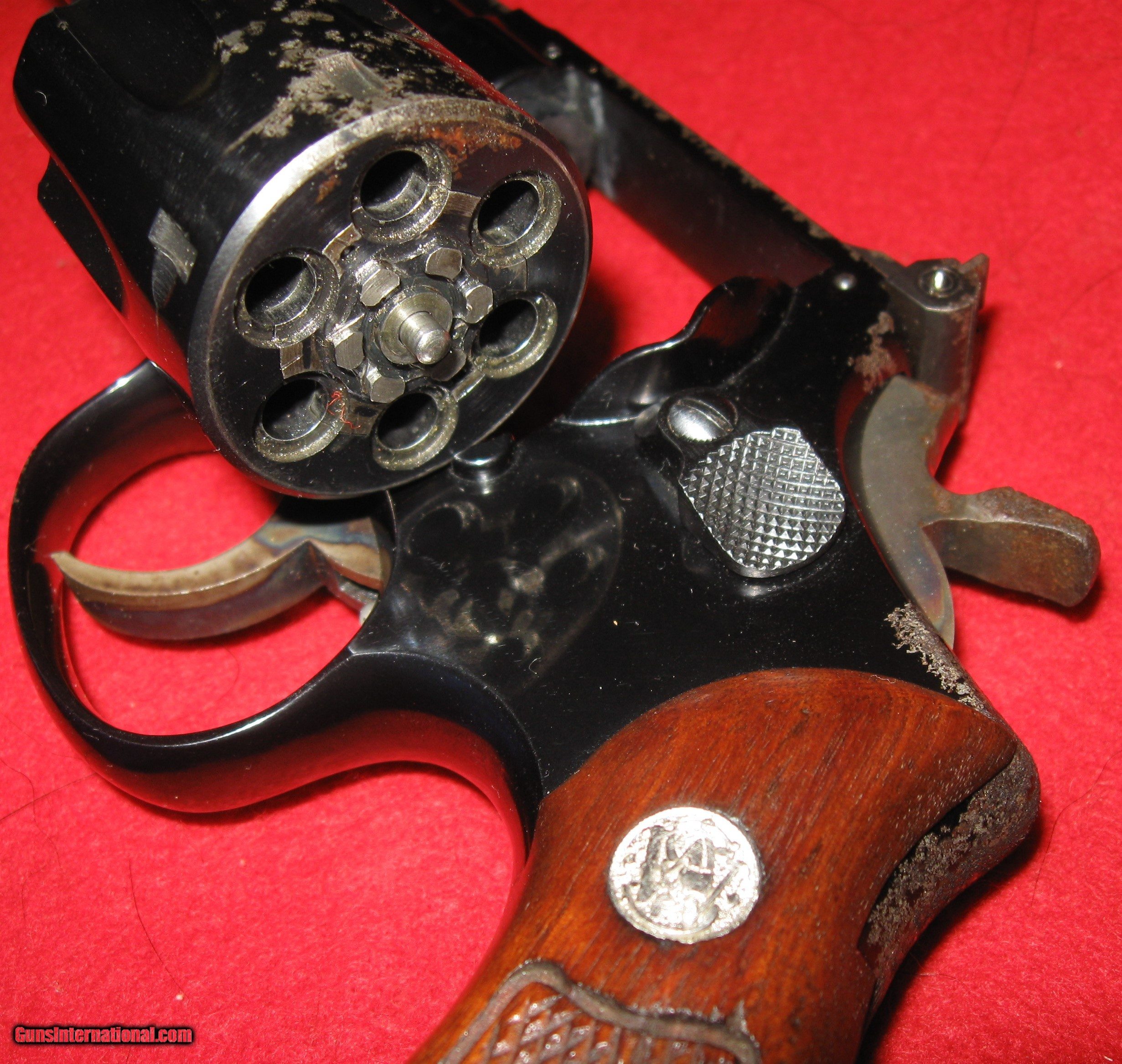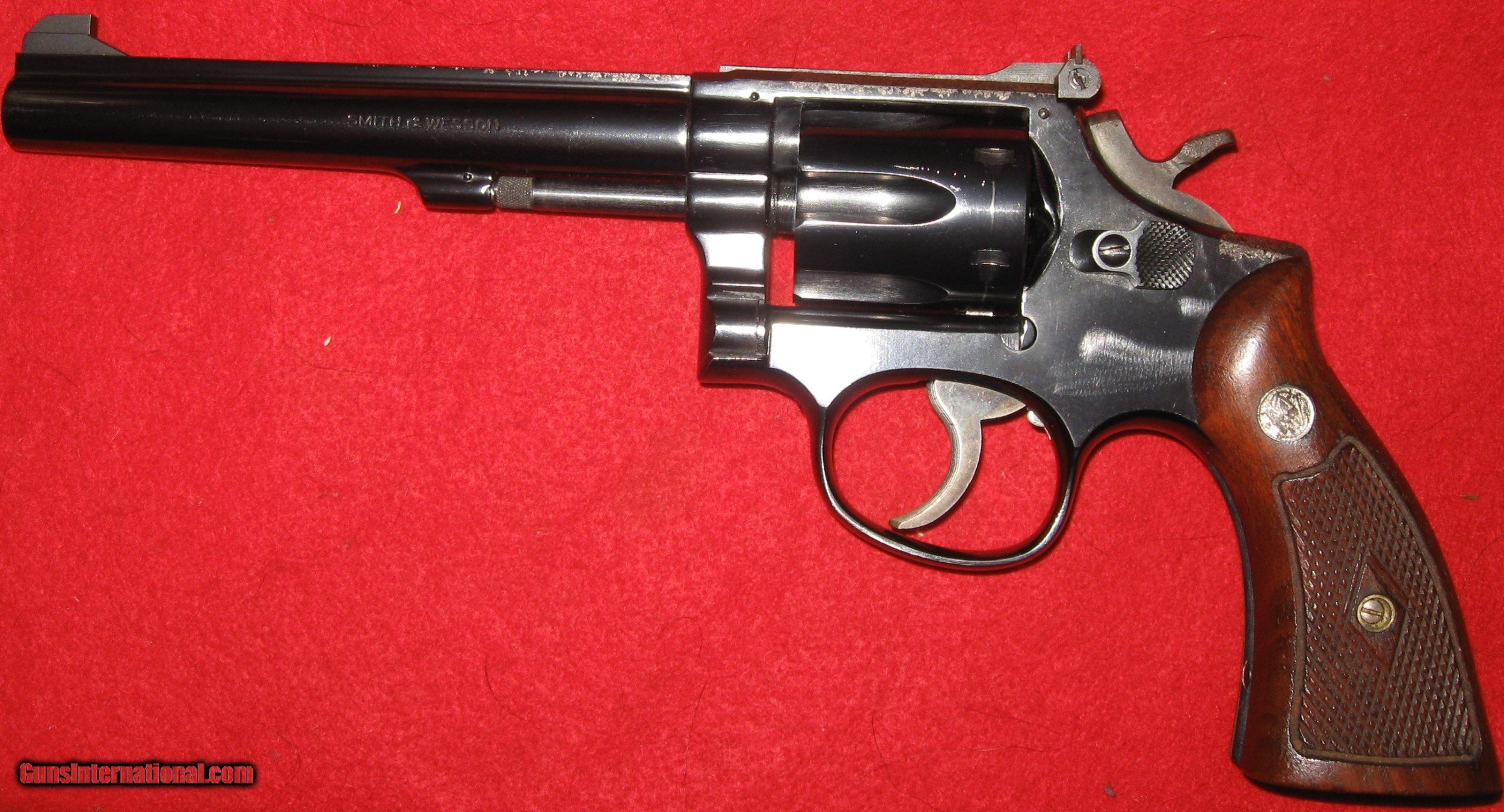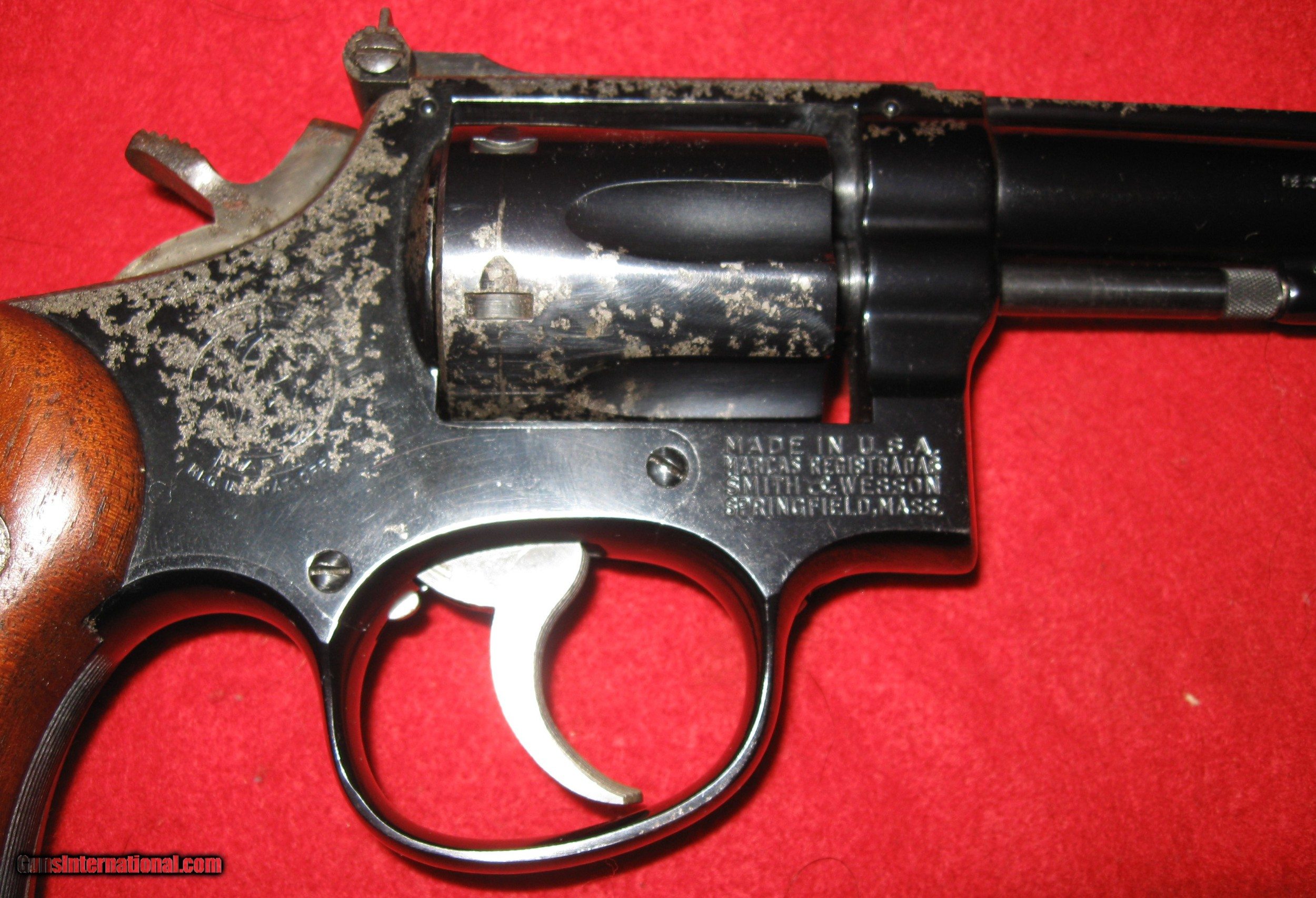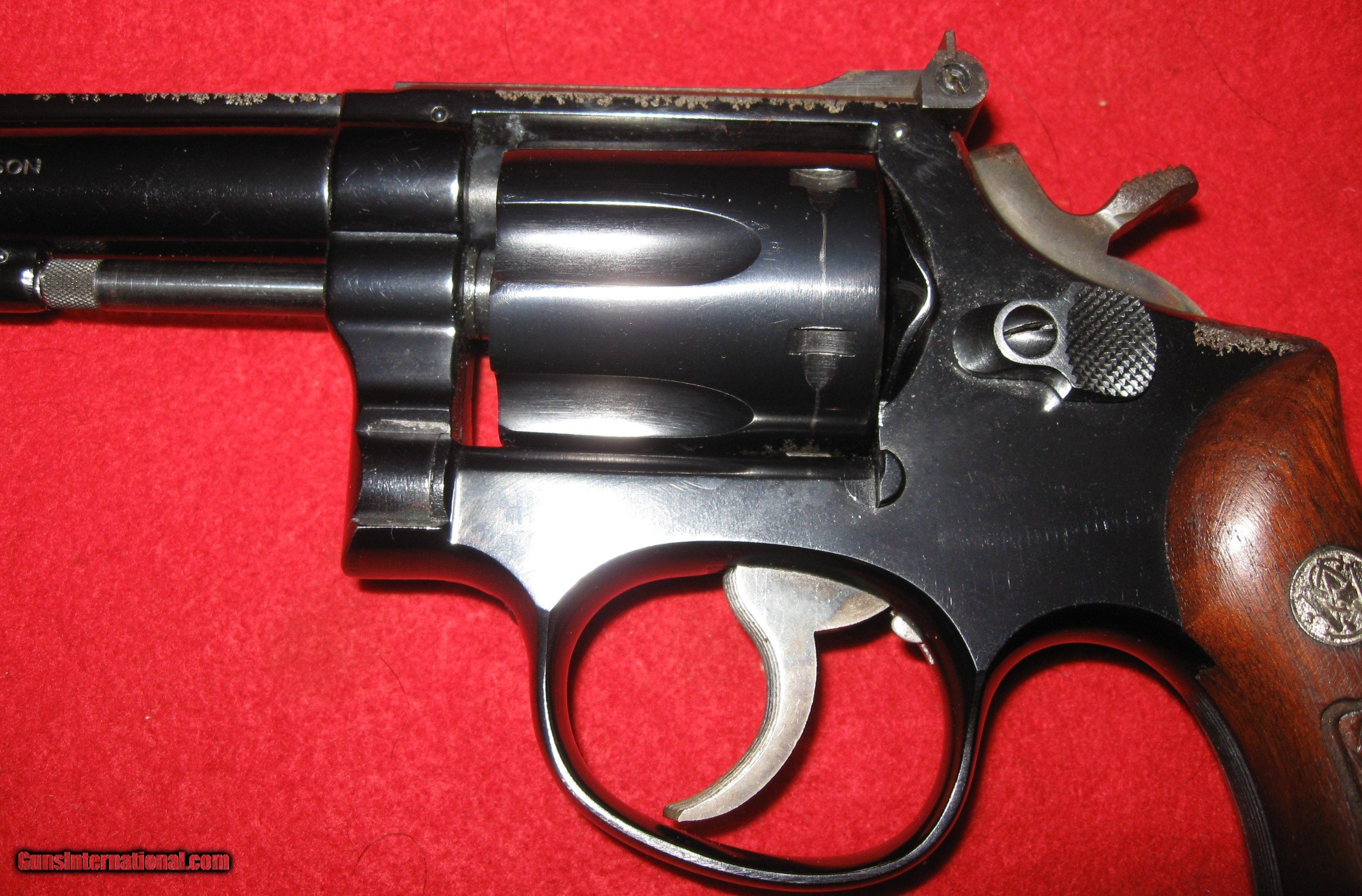 Description: sale pending heather n-THIS REVOLVER IS A FIRST MODEL 17 (NO DASH) A.K.A. K-22 COMBAT MASTERPIECE. IT IS SERIAL # K 360130 AND THE S&W BOOK SAYS THAT IT WAS MADE IN 1959. IT IS IN EXCELLENT MECHANICAL CONDITION THROUGHOUT WITH AN EXCELLENT BORE AND ACTION. YOU CAN SEE FROM THE PICTURES THAT THE FINISH IS BADLY MOTTLED IN PLACES. IT IS MOSTLY EVIDENT ON THE RIGHT SIDE OF THE FRAME AND SOME ON THE TOP STRAP. THE TRIGGER AND HAMMER ARE CASE HARDENED. IT'S A FANTASTIC TARGET PISTOL WITH ADJUSTABLE SIGHTS, SMOOTH DOUBLE ACTION TRIGGER PULL AND A CRISP, LIGHT SINGLE ACTION TRIGGER PULL. SHIPPING IS $35 MY FFL TO YOUR FFL SOLD Handgun Caliber: .22 Short, .22 Long, .22 Long Rifle Manufacturer: SMITH & WESSON Model: 17 (K-22 COMBAT MASTERPIECE) Serial Number: K 360130 Barrel Length: 6 Chambers: 6 Condition: VERY GOOD Metal Condition: EXCELLENT (FINISH DAMAGE) Wood Condition: EXCELLENT Bore Condition: EXCELLENT Action: SINGLE/DOUBLE Triggers: CASE HARDENED Finish: BLUE- DAMAGED- LIGHT PITS, BLUE GONE ON RIGHT SIDE OF FRAME AND SPOTS ON CYLINDER AND BARREL RAMP Sights: ADJUSTABLE Manufacture Date: 1959 (S&W BOOK& |