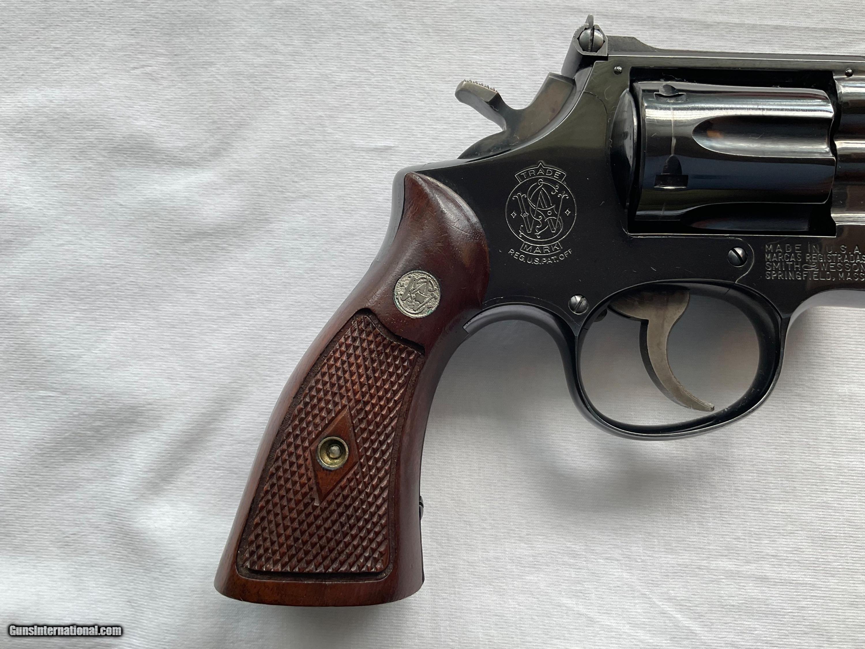 Description: Less common dash 1, four screw variant. Study the pictures. Beautiful finish except for a turn ring on the cylinder and some tiny pin pricks on the left side of the barrel that I tried to photograph. These are barely noticeable but they are there so I wanted to mention. Otherwise the bluing is spectacular. Grips have the diamond escutcheons, Checkering is sharp with no chips or cracks. Pinned and recessed of course. This would be a great one to fill that gap in your collection. SOLD |