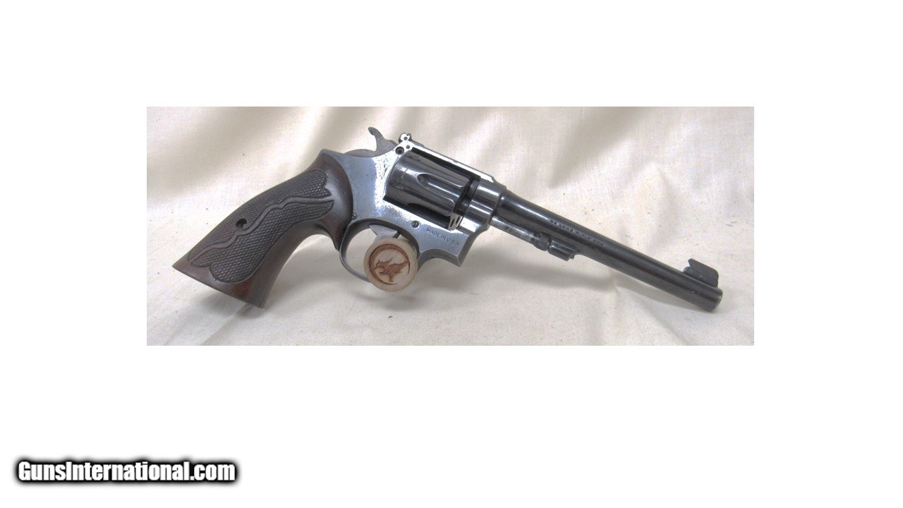 Description: Guns Listing ID: 1339169 Smith & Wesson Model 17, Full-Size Revolver in 22 LR, 6\" Pinned Barrel, 6-Round Recessed-Chambers Cylinder, Adjustable Sights, Blued, Pre-Lock, After-Market Hardwood Grips (Small Chip at the Backstrap) SOLD Manufacturer: SMITH & WESSON Model: 17 Caliber Info: .22 LR Condition: Used - Non-Certified Barrels: 6 BARREL Finish: WOOD GRIPS/BLUED STEEL |