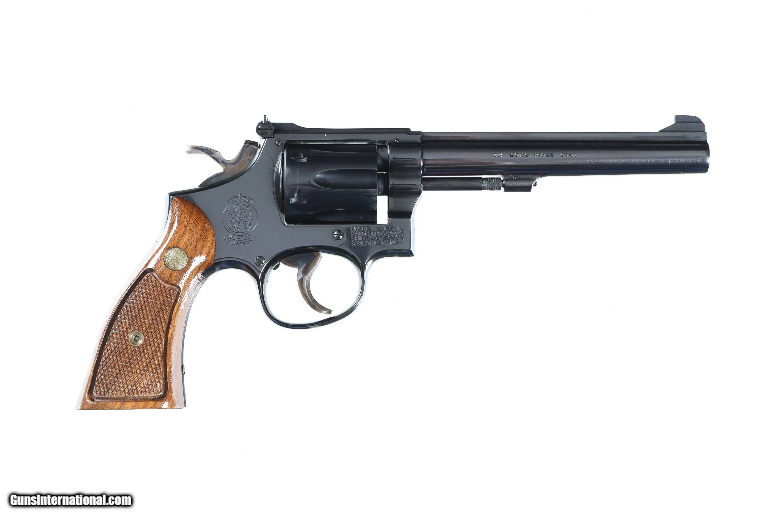Description: Excellent plus overall condition, limited to no handling marks, faint cylinder turn linge present. Manufactured circa 1970. With matching factory box, cleaning rod, and brushes. Mfd. 1970 • Free Shipping, No Credit Card Fees. • Lay-a-way available for this firearm. • 1/3 Down, a 1/3 in 30 Days 1/3 in 60 Days. SOLD Curio/Relic: Yes Manufacturer: Smith & Wesson Model: 17-3 Serial Number: K957669 Barrel Length: 6 |