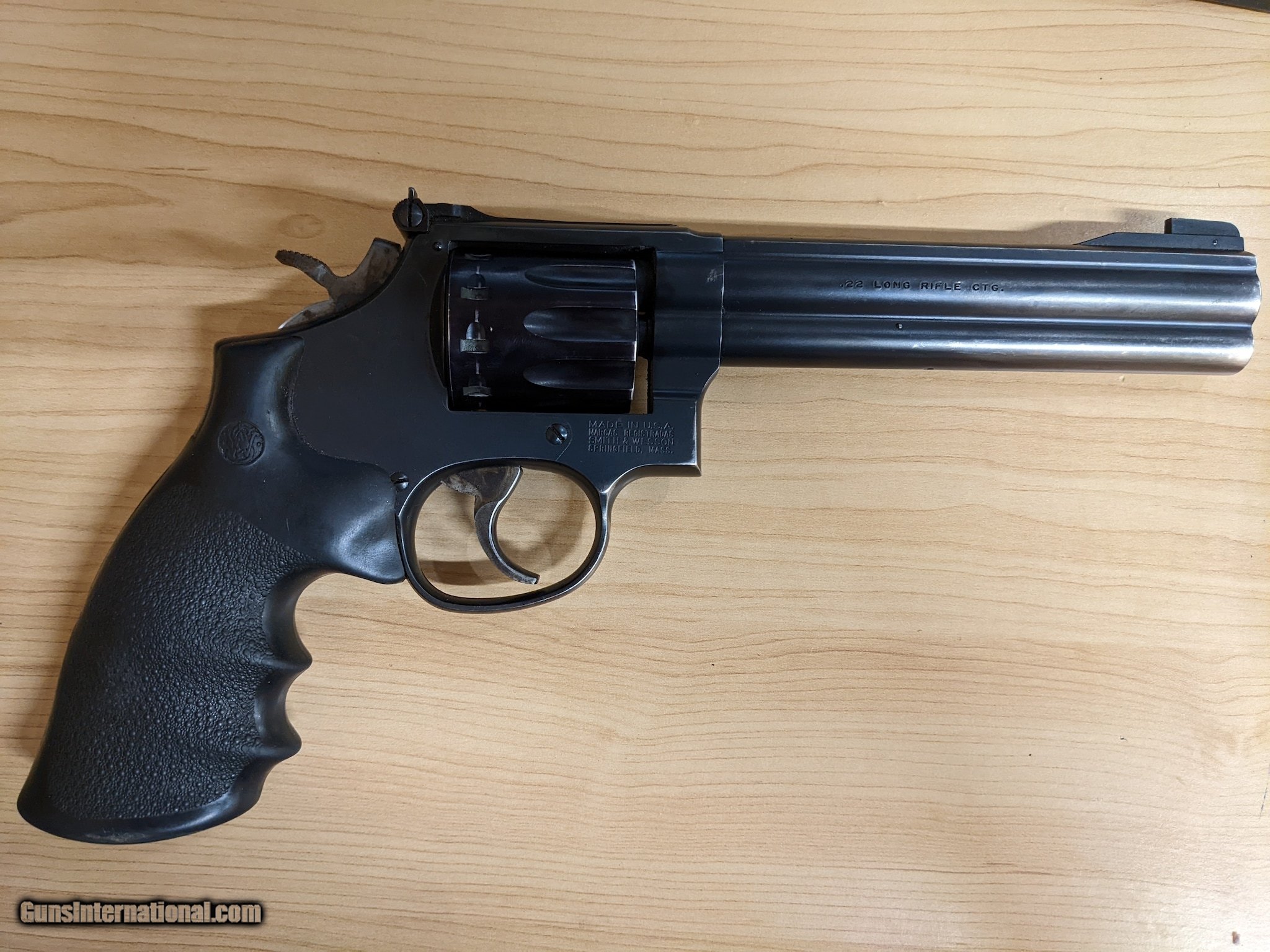 Description: Guns Listing ID: 449890 This is a Smith & Wesson17-8 Revolver, it is chambered in .22 LR and has a 10 round capacity. This revolver has a blued finish, a 6\" barrel and black rubber grip. It is in good condition and includes a case. Specifications Manufacturer: Smith & Wesson Caliber: .22 LR Barrel: 6\" Stock/Grips: Black Rubber Sights: Adjustable Capacity: 10 Rounds SOLD Manufacturer: SMITH & WESSON Model: 17-8 Caliber Info: 22 LR Condition: Used - Non-Certified Barrels: 6 BARREL Finish: BLUED |