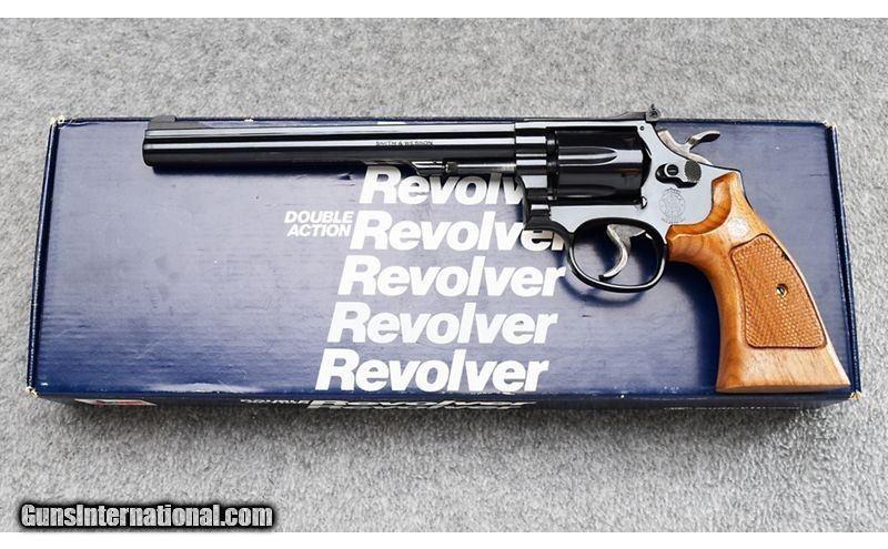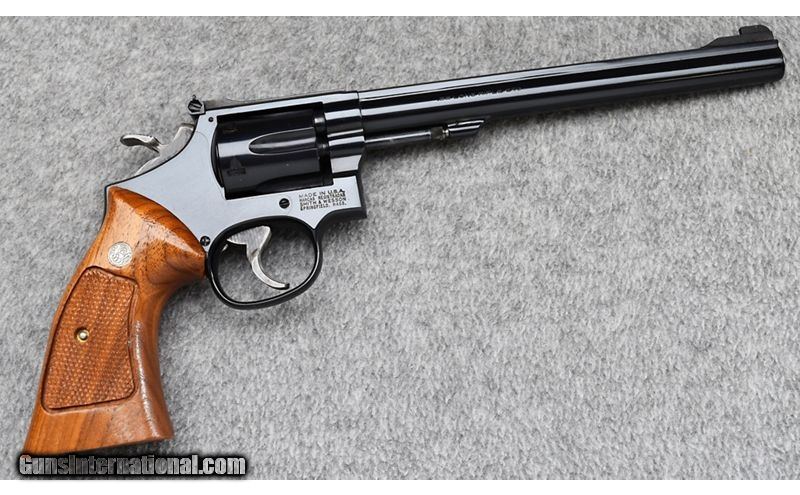 Description: This S&W remains in excellent overall condition showing very little use. Light drag ring on cylinder. Complete with original box. .22 Long Rifle SOLD Metal Condition: Excellent Wood Condition: Excellent Bore Condition: Excellent Barrels: 8 1/4 Triggers: Wide Target Trigger - Wide Target Hammer Butt Pad: Checkered Walnut Grips with S&W Medallion Weight: 47 oz. Sights: Patridge Front - Adjustable Square Notch Rear Item Location: Wheeling |