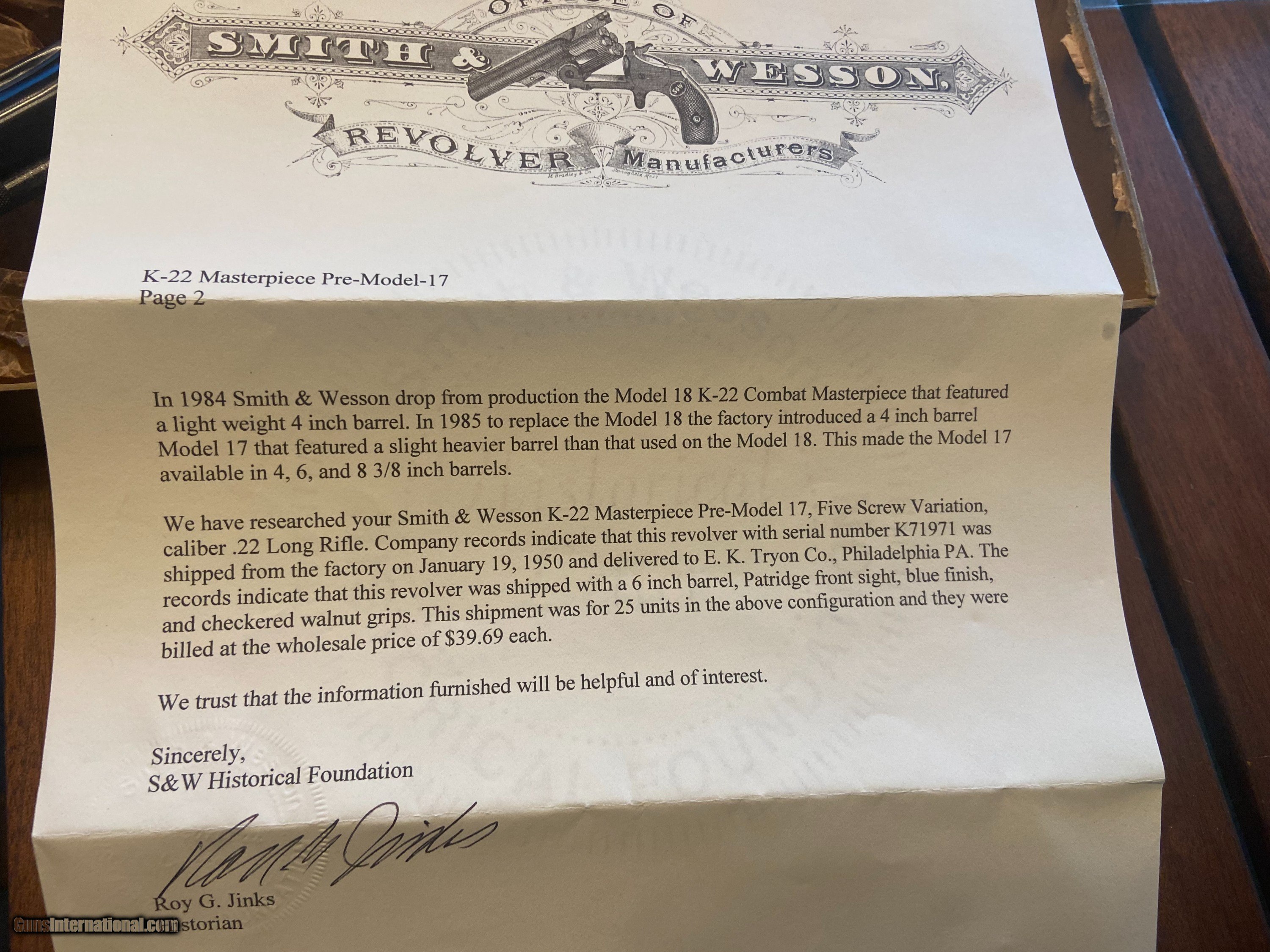 SMITH & WESSON PRE-17 K22 MASTERPIECE IN ORIGINAL BOX -- PAPERWORK AND TOOLS -- STUNNING!!!!