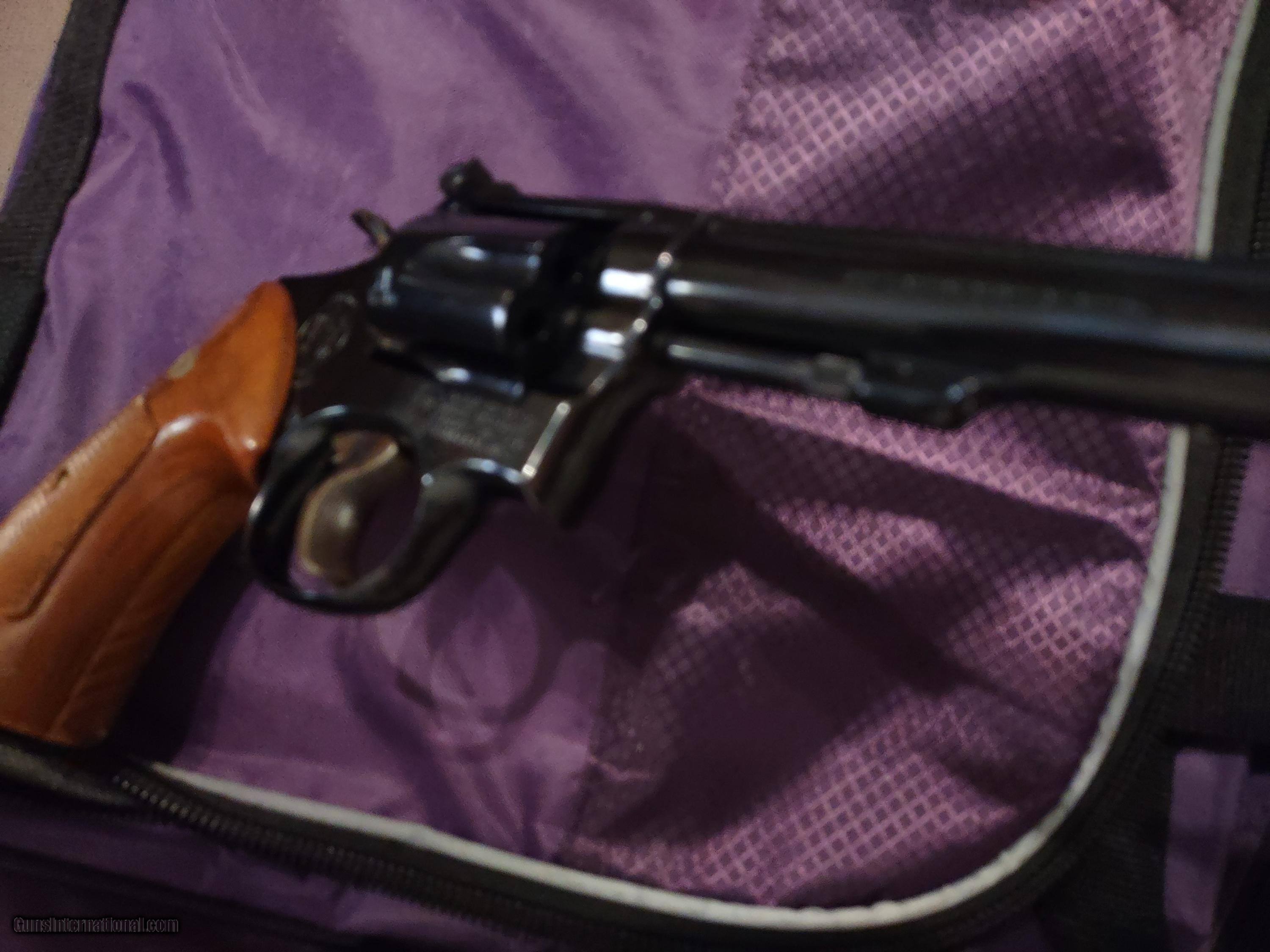 Description: SMITH & WESSON MODEL 17-3 masterpiece .22 long rifle made in 1975, "K" frame, 3-screw, 6-shot fluted cylinder, 6-inch pinned barrel with etched rib, target adjustable rear sight, color case hardened hammer and trigger, Smith & Wesson checkered walnut grips with medallions, bright and glossy bore, no cylinder line with factory original bluing in 100% fine condition...just like new...a real prized possession. Sorry, no box but with soft zipper carry case. The price is $1500 including UPS shipping to the FFL dealer near you. Call or text me at 318-780-4242 if you are interested. SOLD Manufacturer: Smith & Wesson Model: 17-3 Serial Number: 8K29881 Barrel Length: 6 inches Bore: bright and glossy Ejectors: Manual Condition: Flawless Metal Condition: Flawless Wood Condition: Flawless Bore Condition: Perfect, glossy Barrels: Single Barrel Type: Revolver Action: SA/DA Triggers: Single Finish: Blu Sights: open, adjustable Manufacture Date: 1975 Engraving: None Case: Quality soft zipper carry case Item Location: Shreveport, Louisiana |