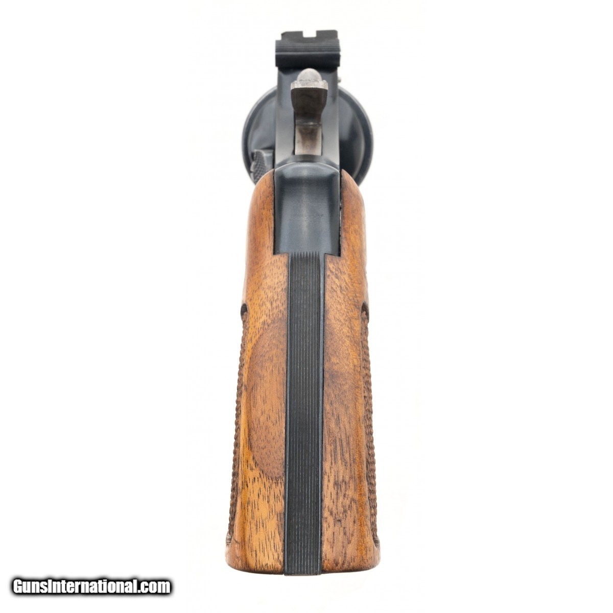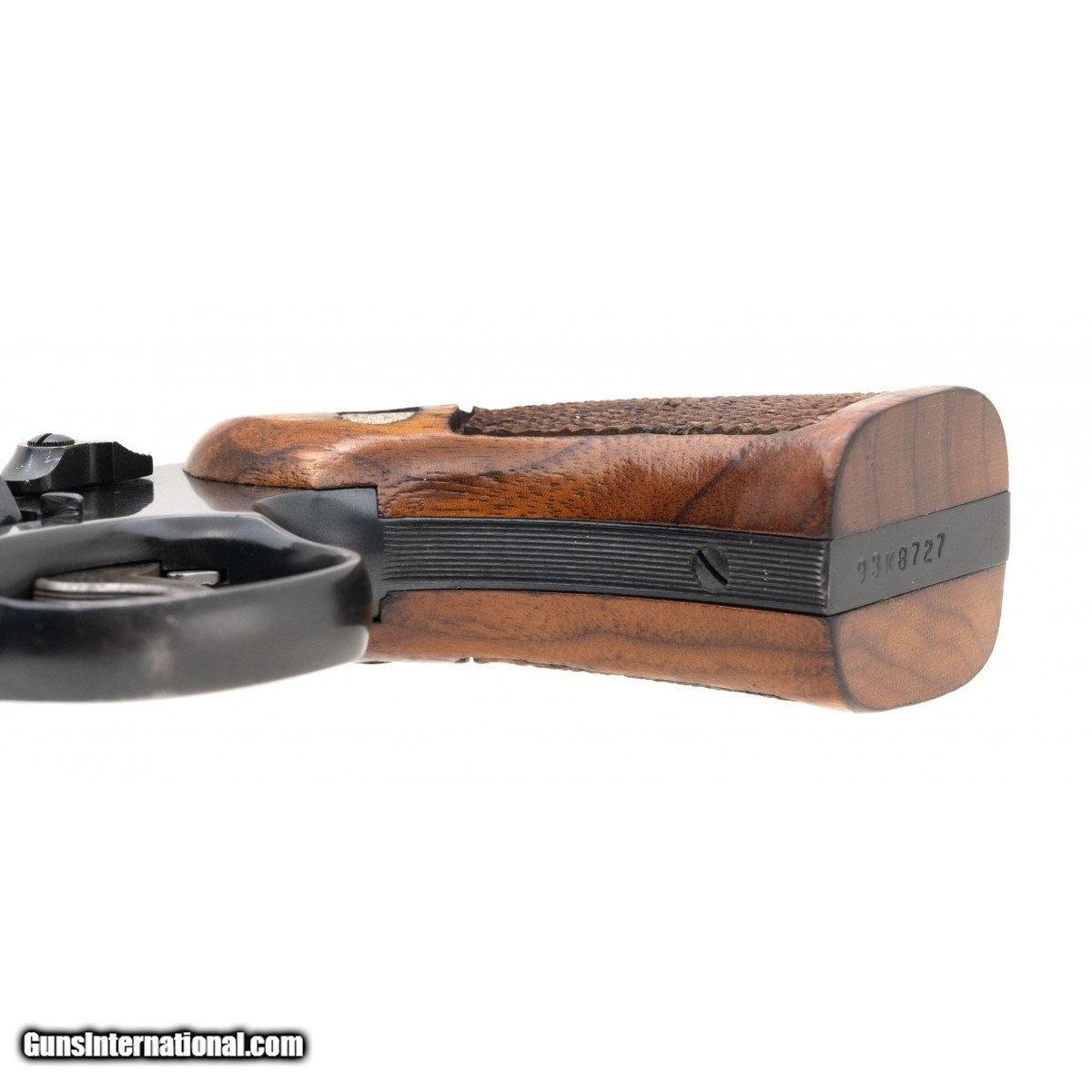 Description: " SN: 93K8727. Circa 1980s. .22LR with a 4"" barrel, bore is excellent. Double action rimfire revolver with blued finish, pinned barrel, recessed cylinder and wood grips. Overall very good condition with some light wear. SOLD |