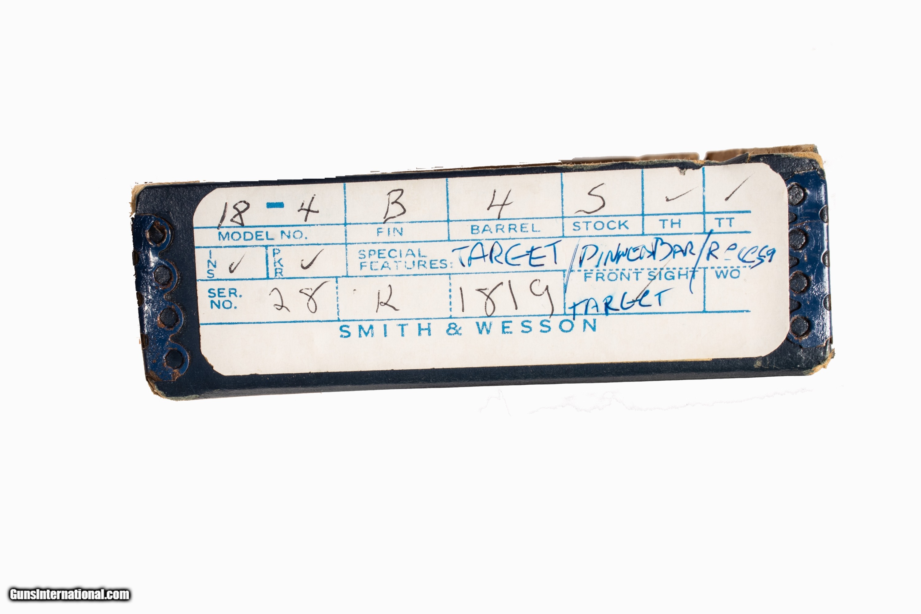 Description: Smith & Wesson 18-4 chambered in 22 LR with a 4 inch barrel bright & shiny bore and the original box .This gun is in very good to excellent condition and is covered by Dury's Lifetime Warranty.