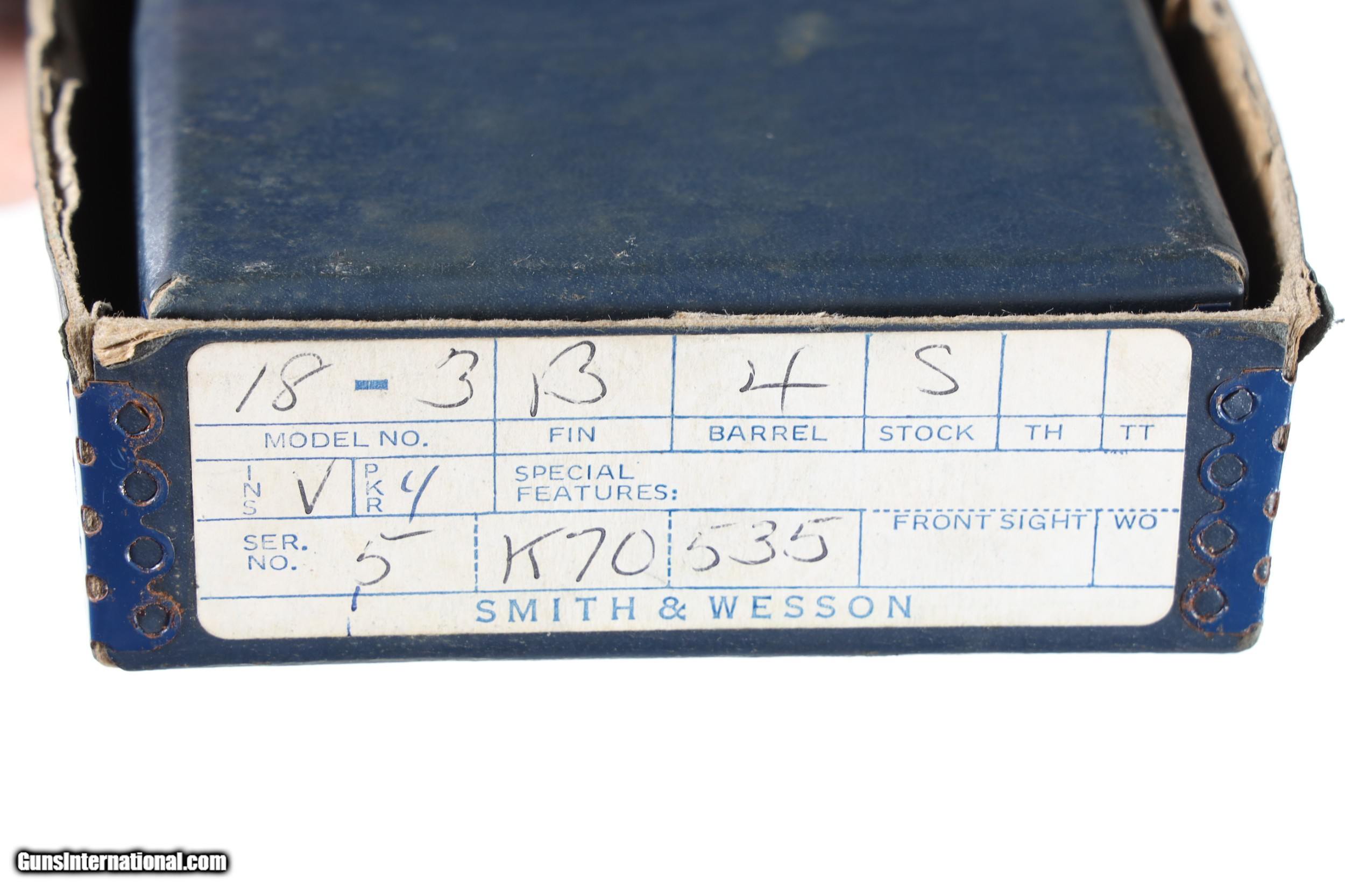 Description: Excellent overall condition with factory box. Manufactured 1973. • Free Shipping, No Credit Card Fees. • Lay-a-way available for this firearm. • 1/3 Down, a 1/3 in 30 Days 1/3 in 60 Days. SOLD Manufacturer: Smith & Wesson Model: 18-3 Serial Number: 5K70535 Barrel Length: 4 |