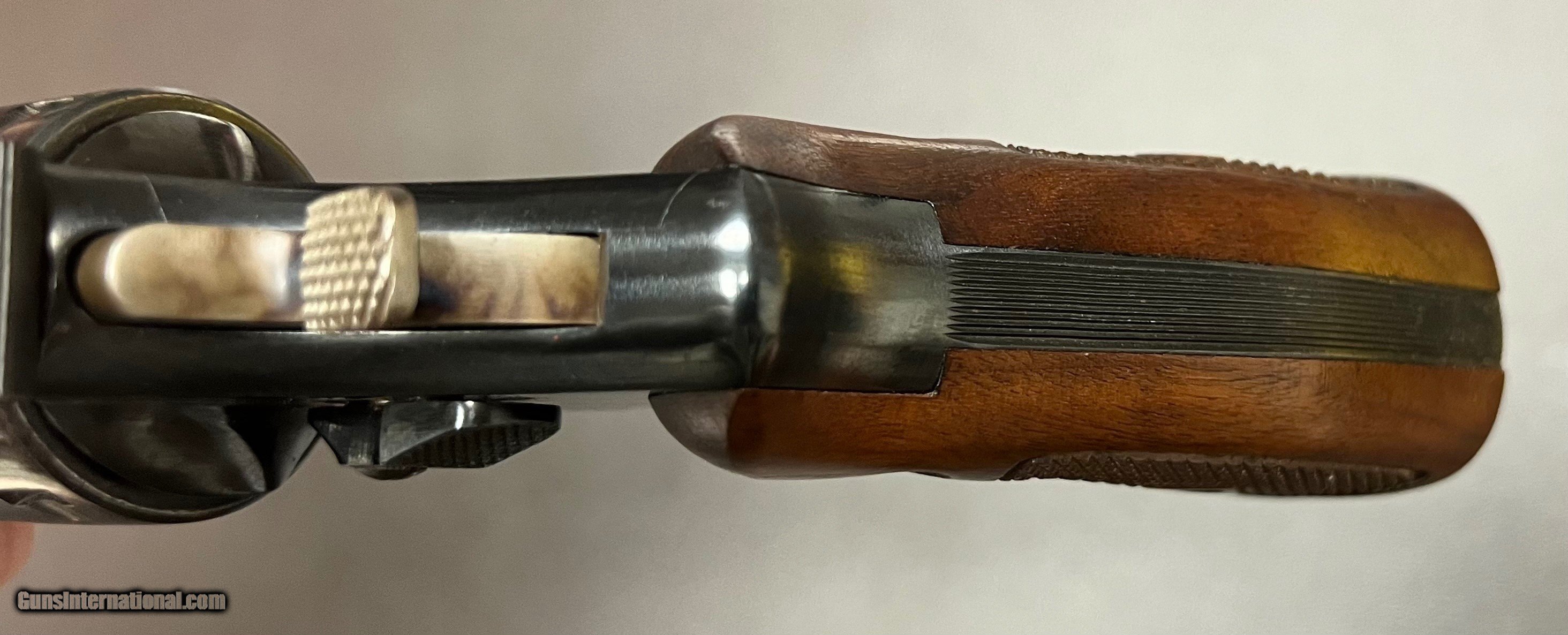Description: Smith & Wesson pre model 18 K-22 combat masterpiece .22LR 4" pinned barrel with excellent bore Adjustable rear sight with fixed ramp front sight Crisp double & single action trigger pull Six round cylinder Bluing is excellent with few light wear spots Case color on hammer & trigger are 100% Grips are excellent SN: K 294616 Built in 1956 No box or paperwork Excellent original condition pre model 18 K-22 combat masterpiece, they don't build them like this anymore. Curio/Relic: Yes Handgun Caliber: .22 Long Rifle Price: $1,350.00 Buy Now Contact Seller |