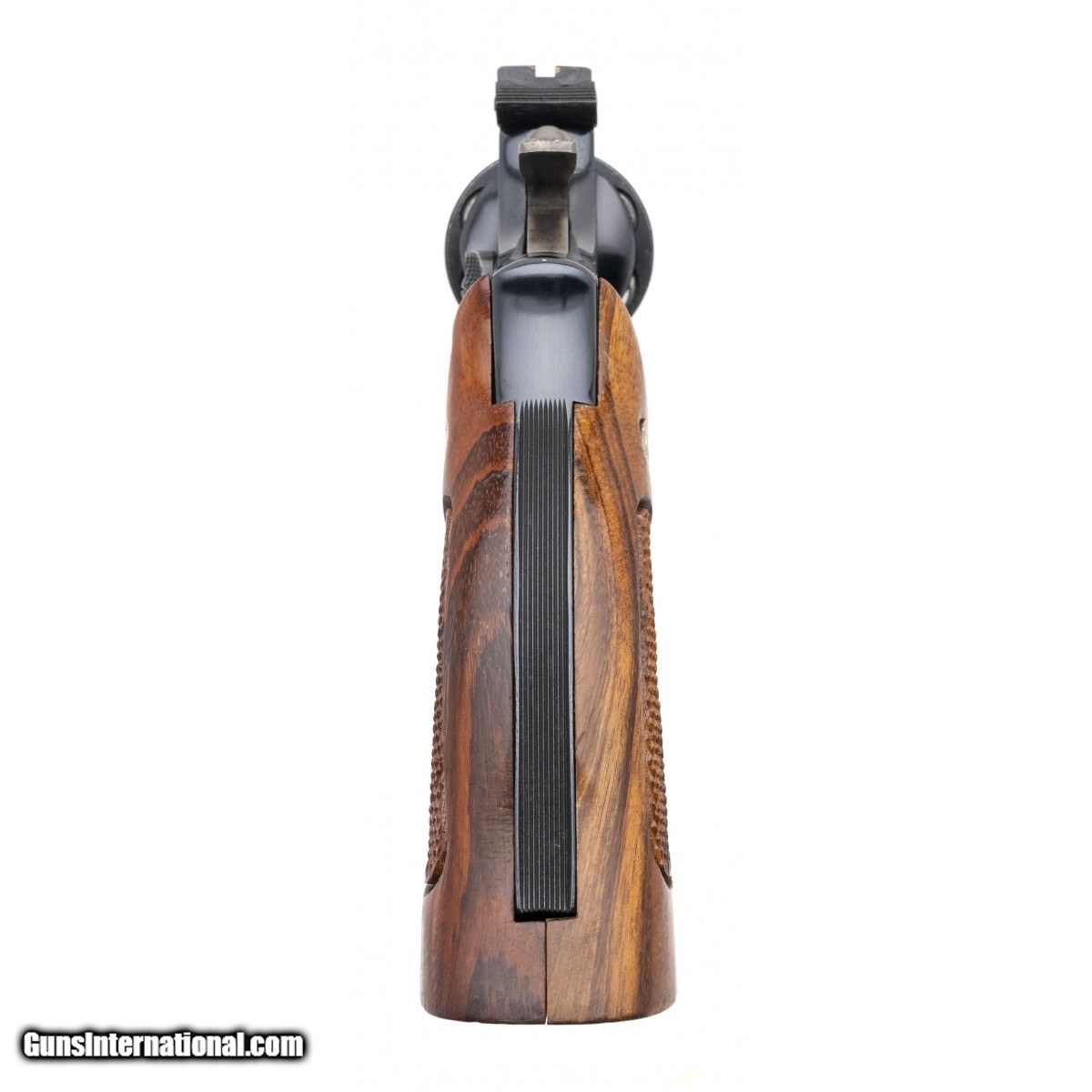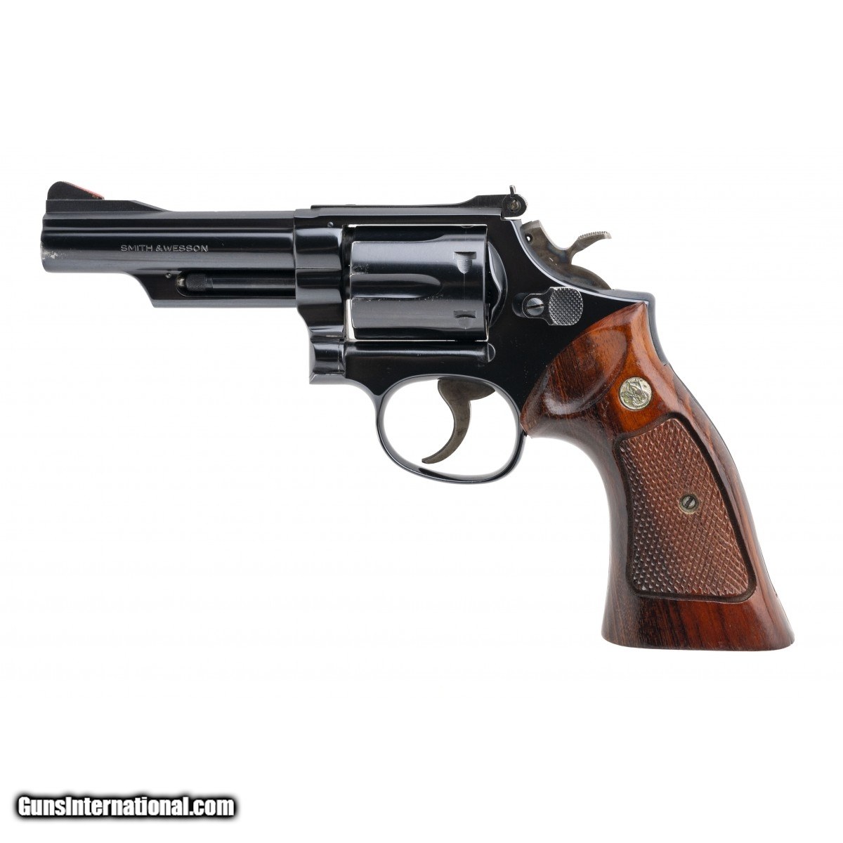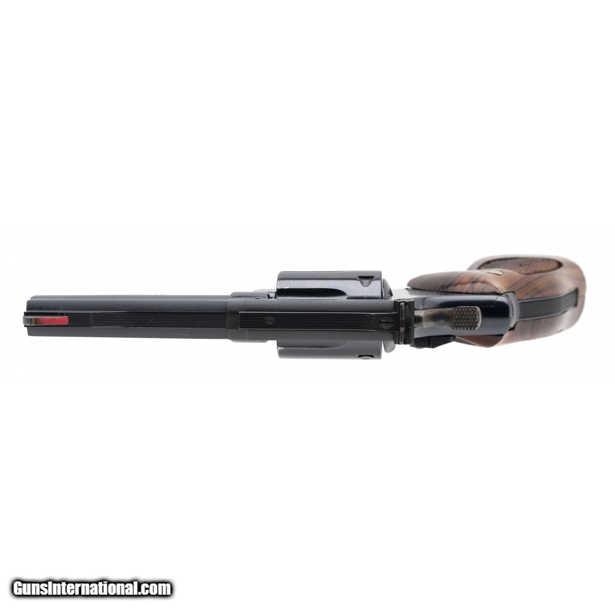 Description: " SN: 9K27473. Made in 1976. .357 Magnum with a 4"" Pinned barrel. Bore is bright with strong rifling. K Frame revolver with a pinned barrel & recessed cylinder. Blue finish is thinning in small areas while retaining 90% of factory blue. Grips show light handling wear with strong checkering remaining. Overall very good condition. SOLD |