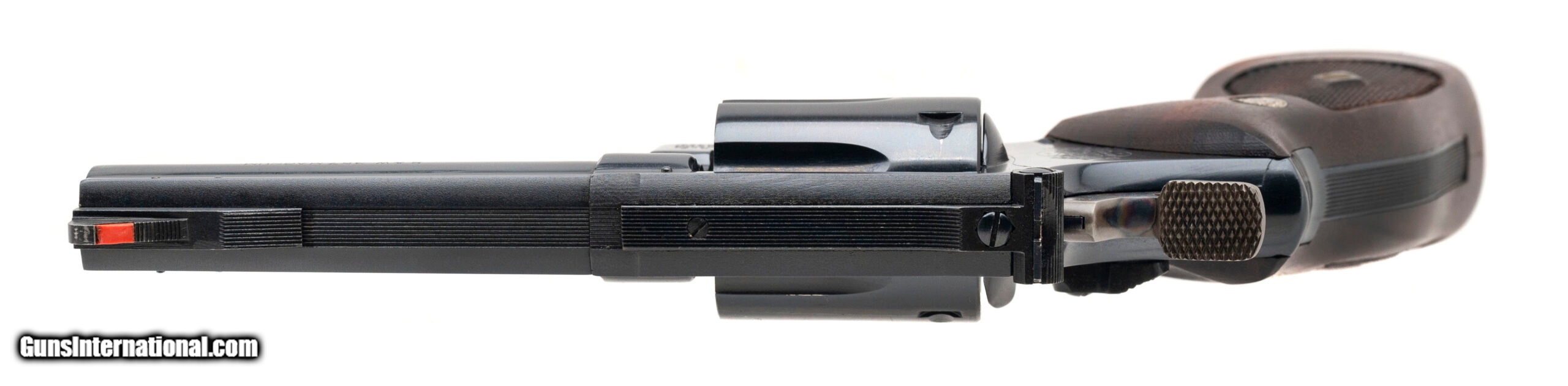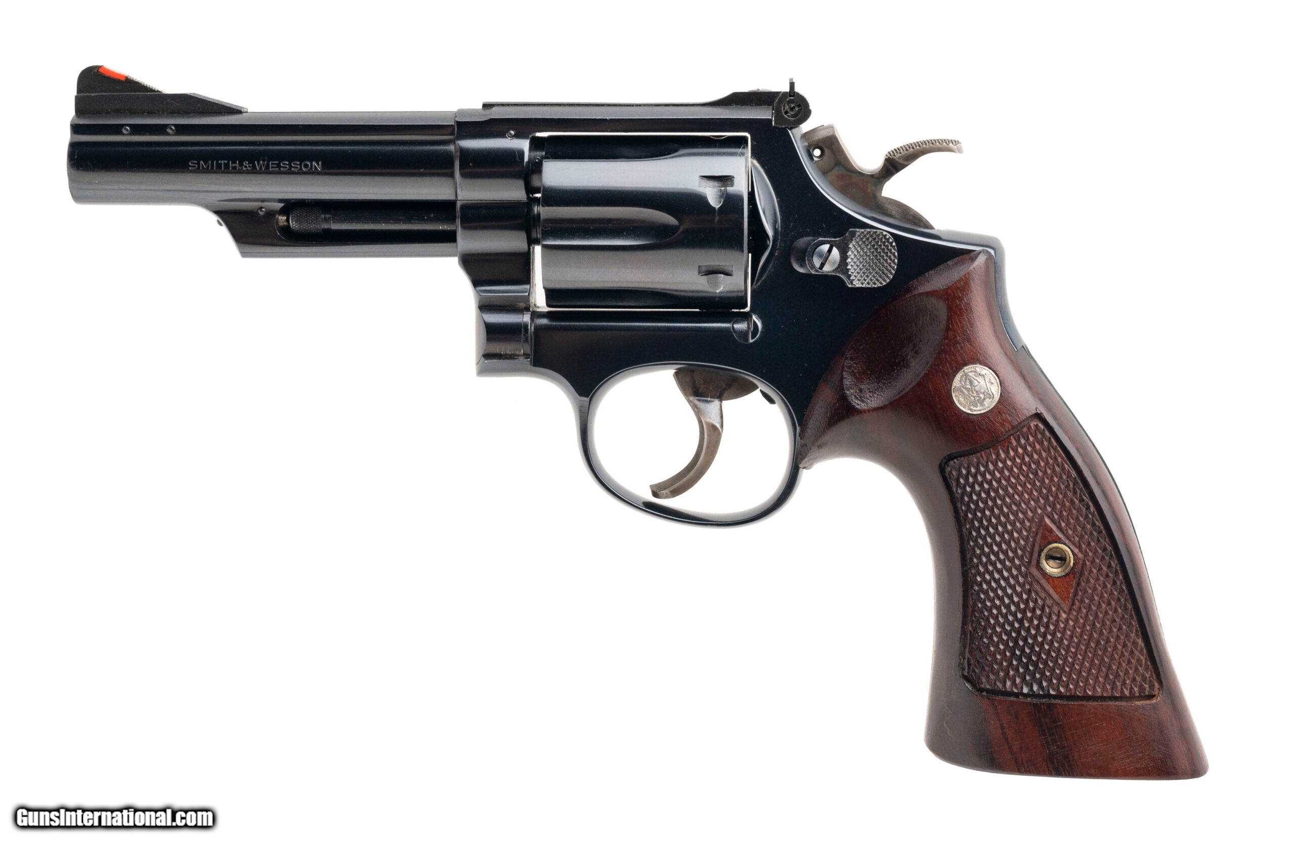 Description: "SN: K898166. Made in 1969, .357 Mag with a 4"" barrel. Early model K frame revolver with pinned barrel and recessed cylinder. Has blue finish and diamond checkered grips. Overall excellent condition with light use. SOLD |